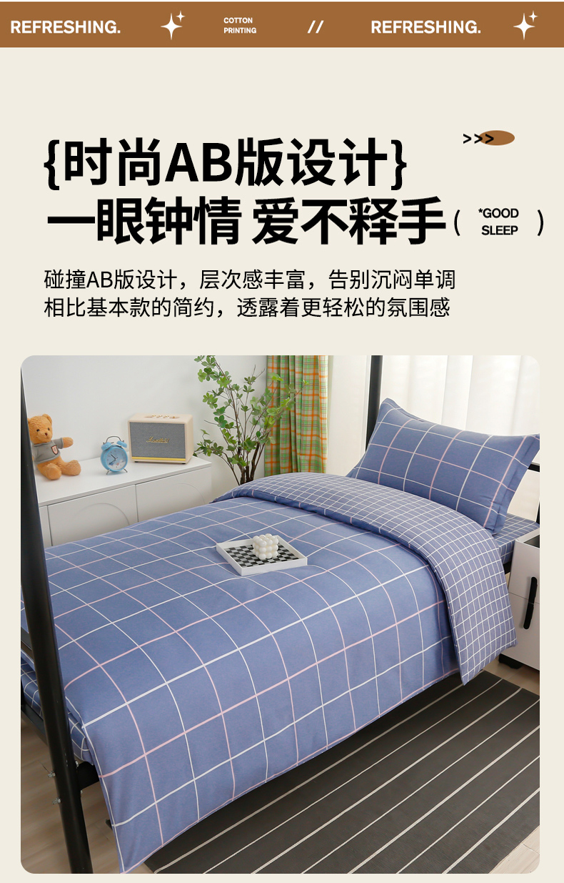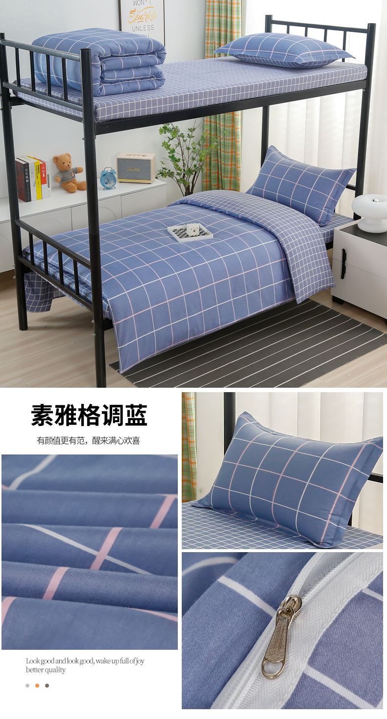 当前位置: 91家纺网 > 商品网购 > 床品套件 > 多件套 > 多件套 > 乐旗家纺 2025新款A类AB版全棉环保印花学生上下铺宿舍三件套六件套 素雅格调-蓝