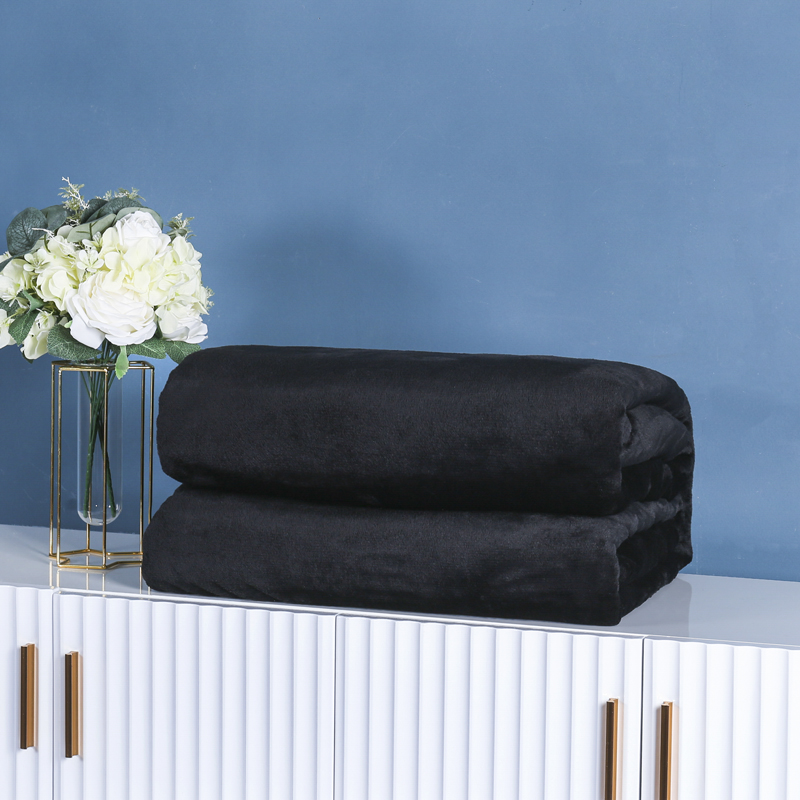 胜百毛毯2025新款素色200克法兰绒毯 黑色