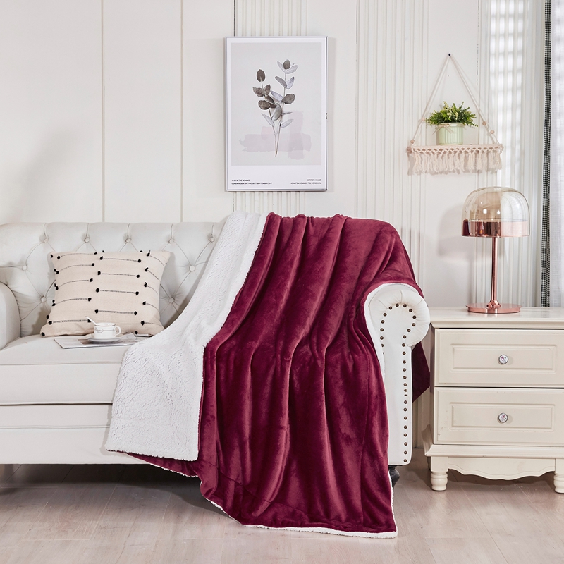 商品名称:胜百毛毯 2025新款平方克重200克双面法兰绒毛毯 酒红