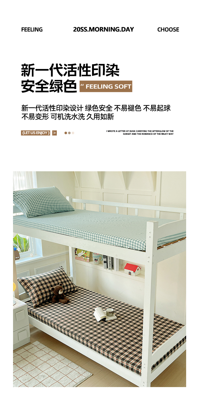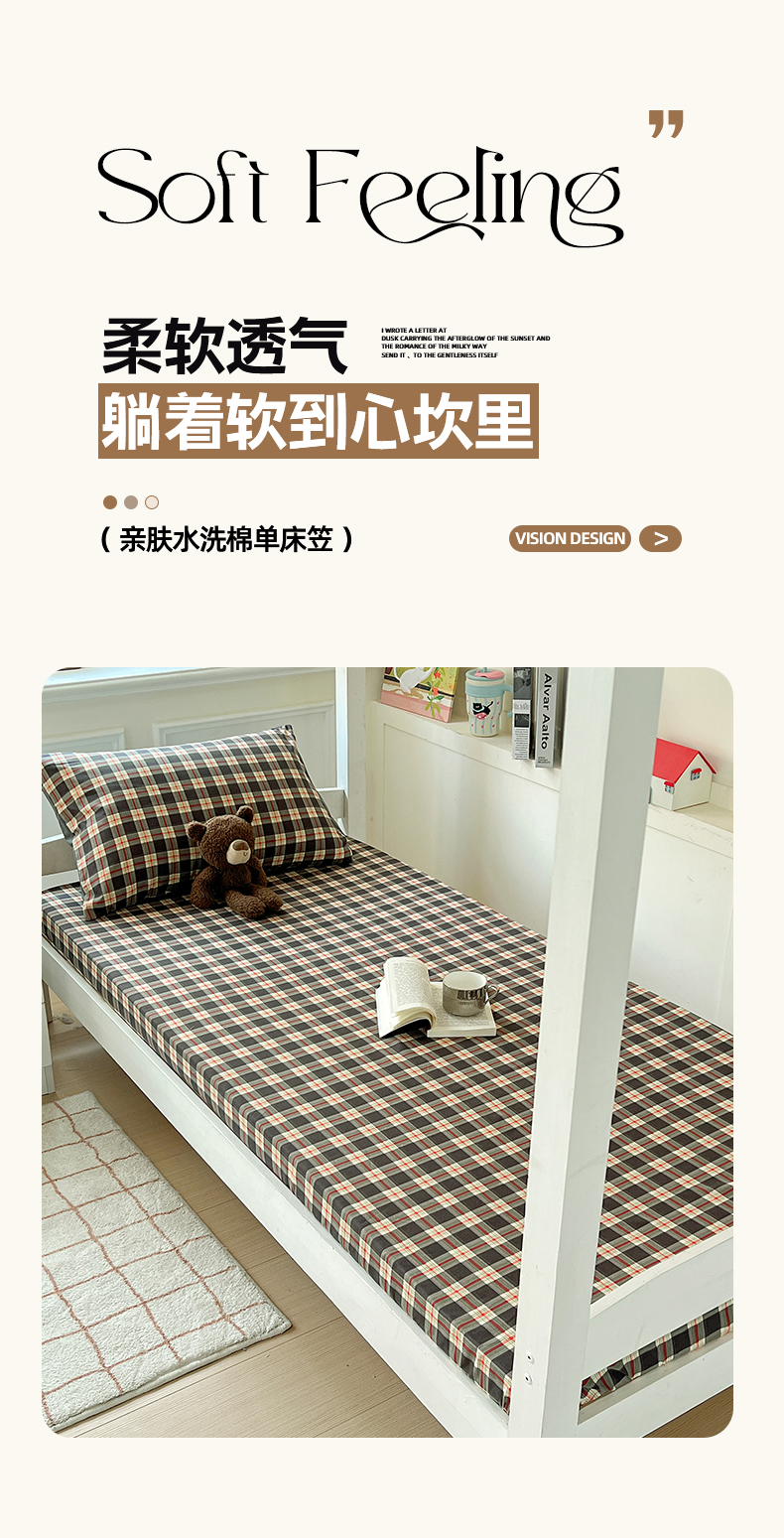 • 91家纺网 家纺一手货源 找家纺 妖妖家纺 2025新款软糯格子学生床笠 一杯拿铁