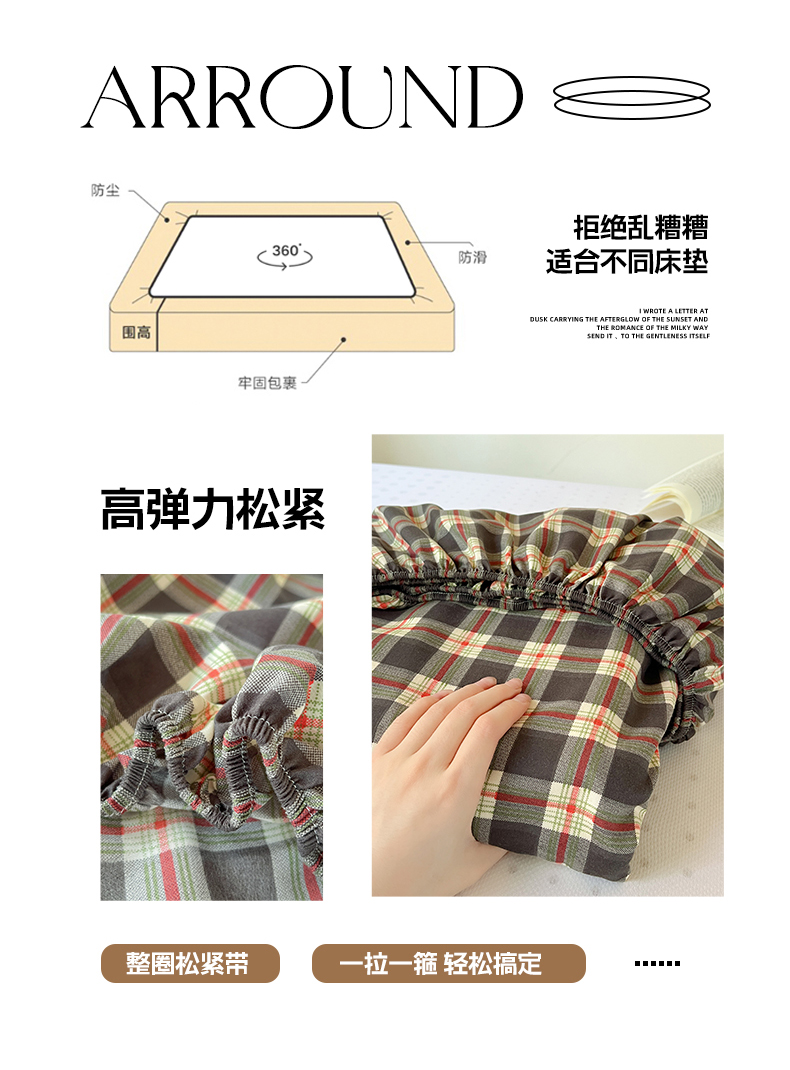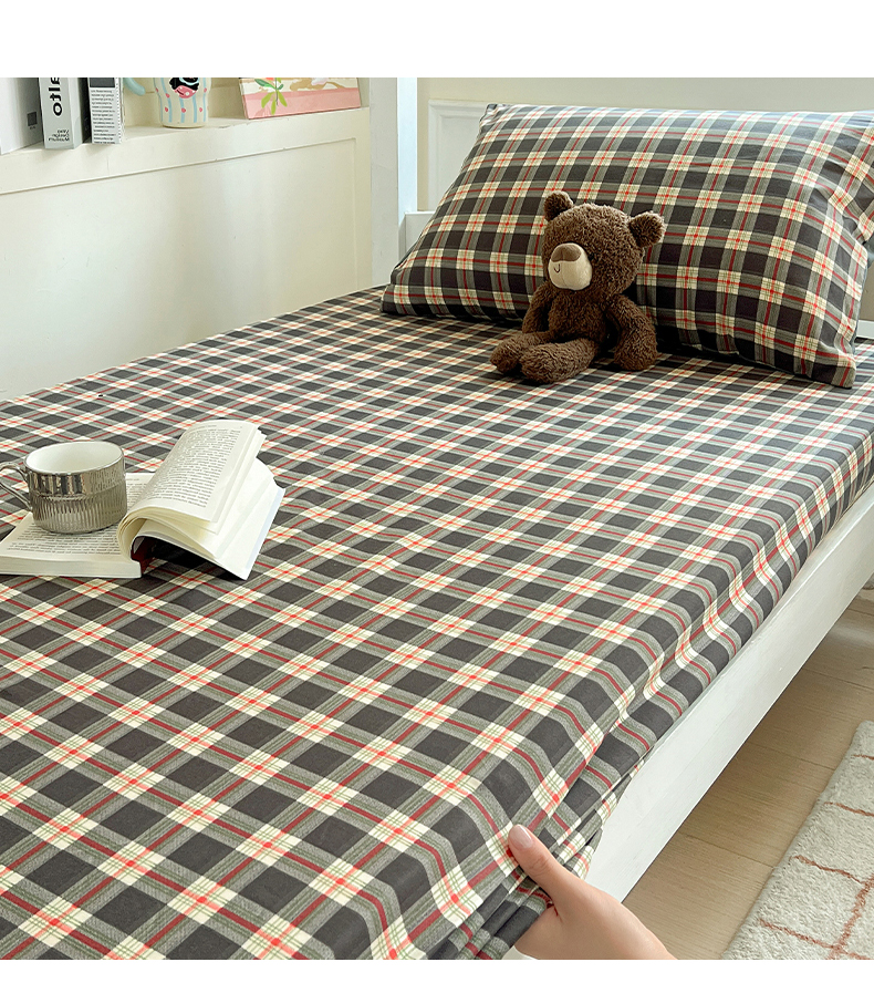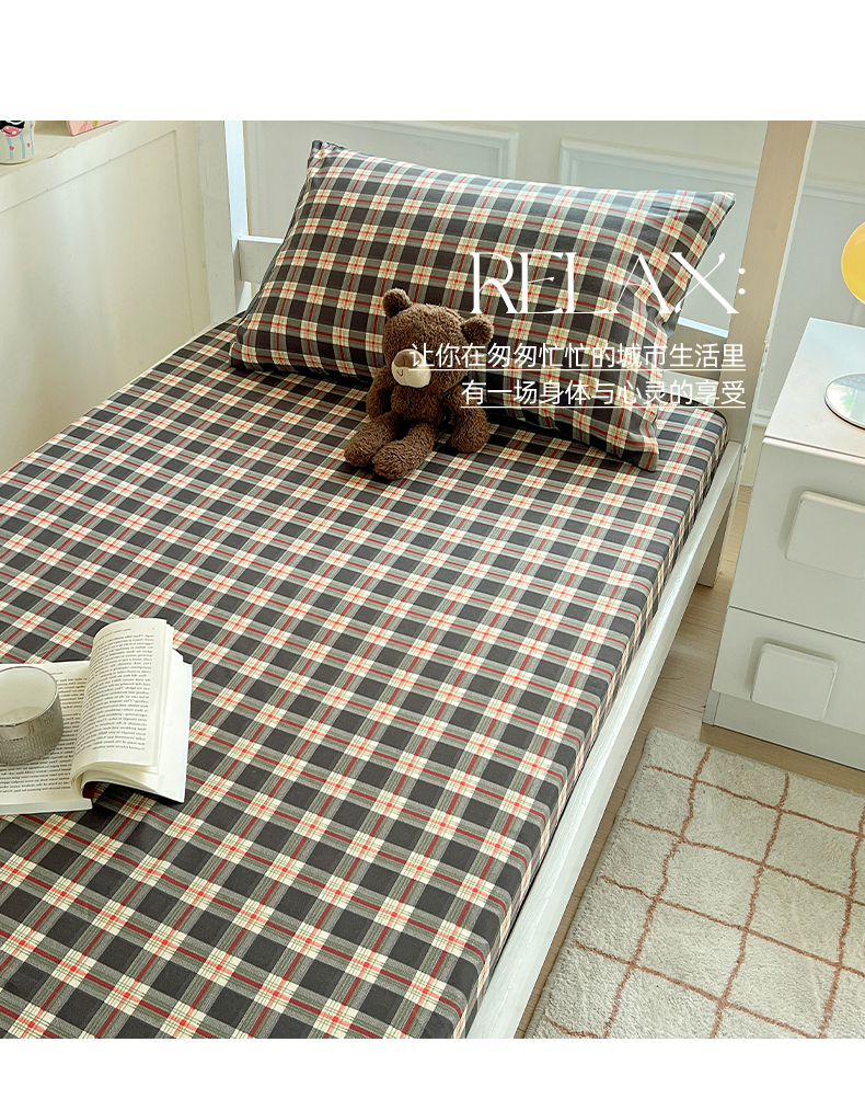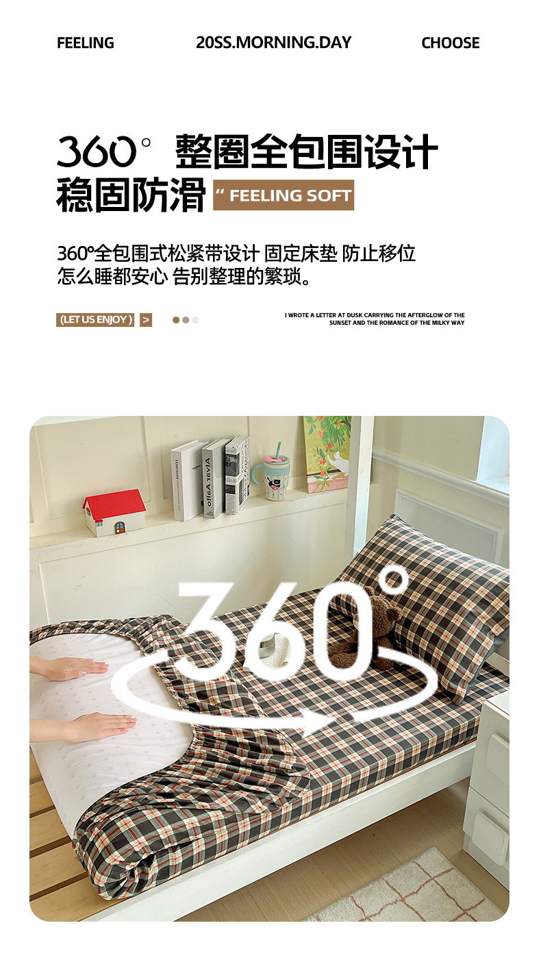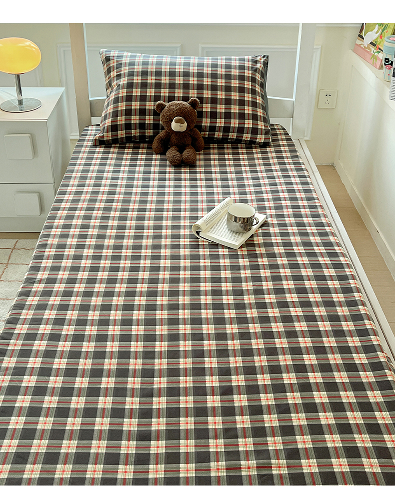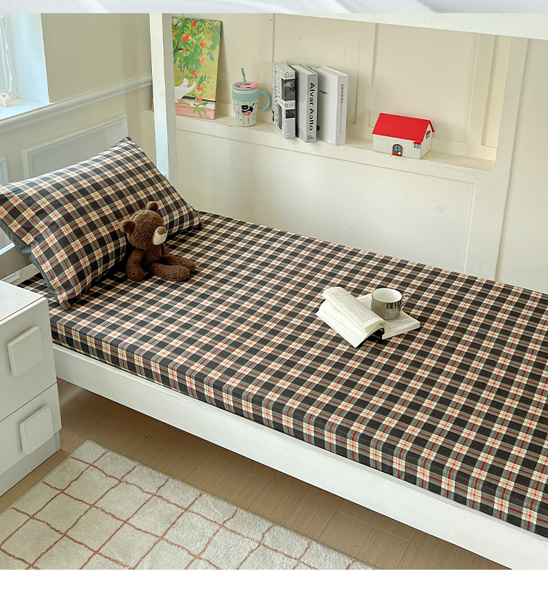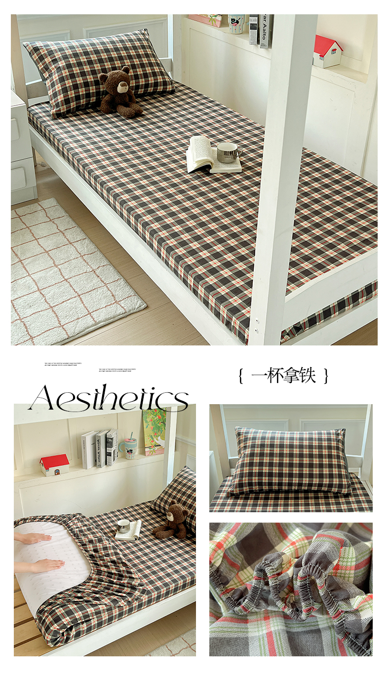 妖妖家纺 2025新款软糯格子学生床笠 一杯拿铁
