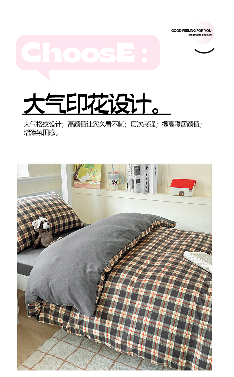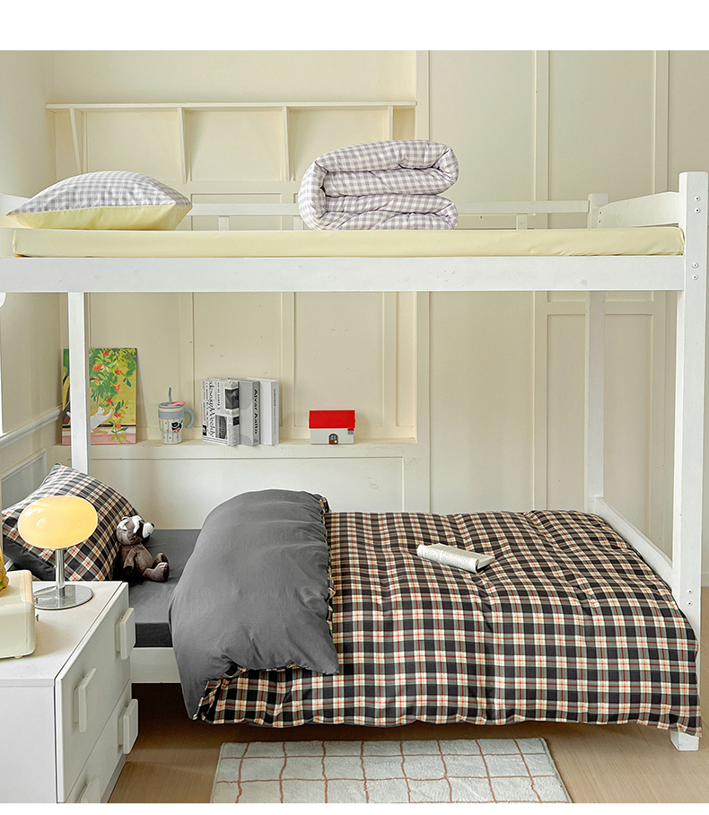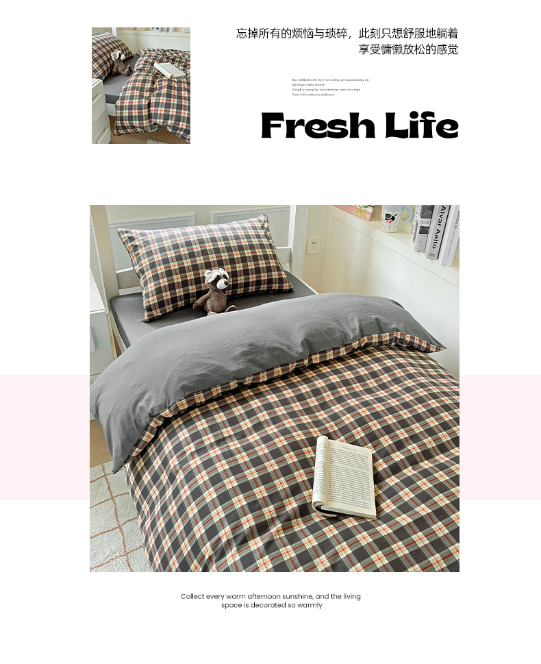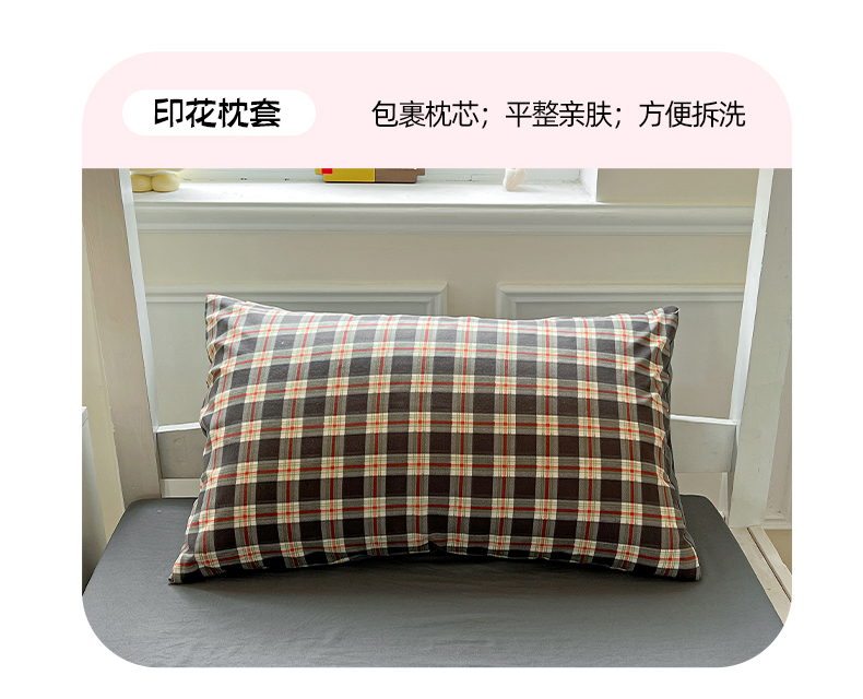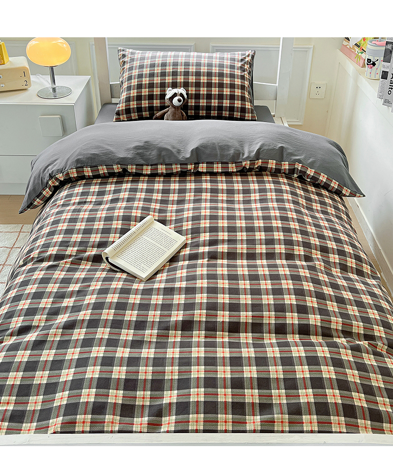 商品名称:妖妖家纺 2025新款软糯水洗棉格子学生三件套 一杯拿铁