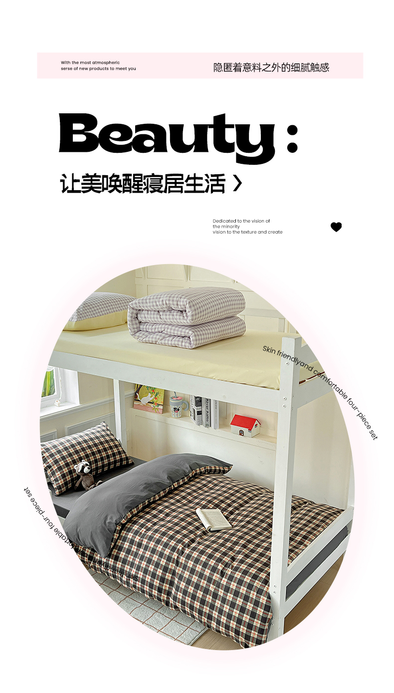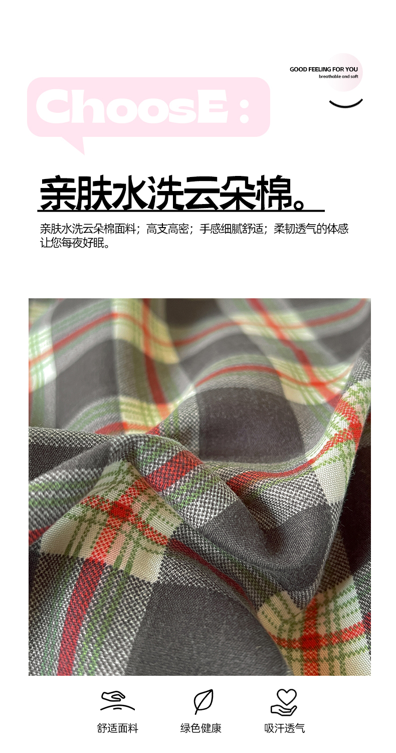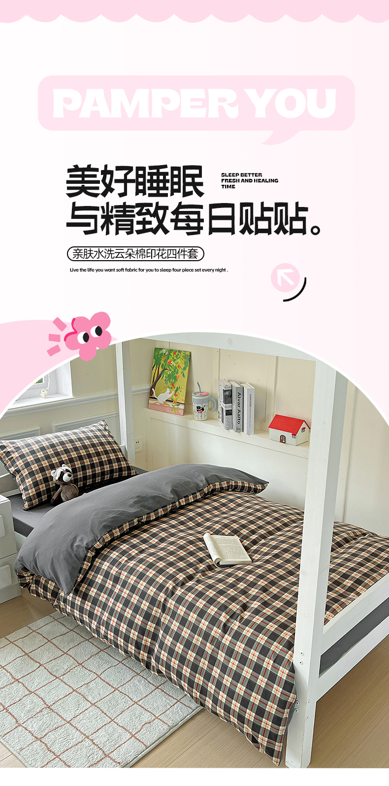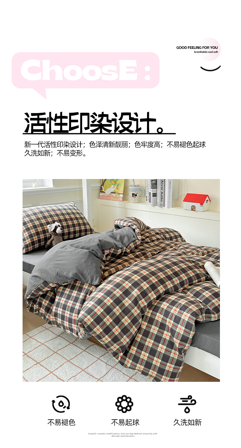 商品名称:妖妖家纺 2025新款软糯水洗棉格子学生三件套 一杯拿铁