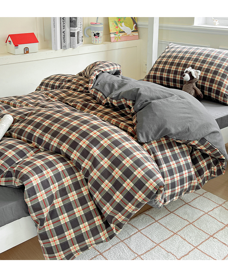 妖妖家纺 2025新款软糯水洗棉格子学生三件套 一杯拿铁