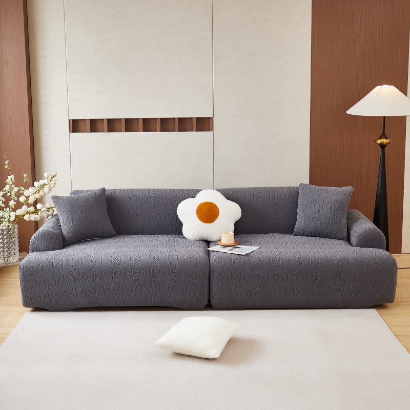 丝绮鹿 2025新款雕花绒玉叶沙发套直排松紧款 玉叶-浅灰