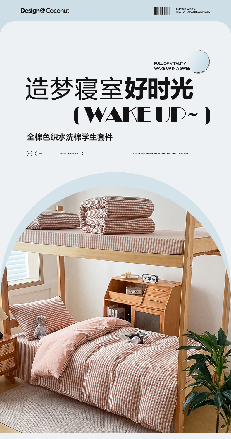 (总)九沐良品 2025新款亲肤舒适学生宿舍上下铺三件套六件套大礼包宿舍三件套上下铺三件套,柏拉图兰,粉大格,粉小格,蓝大格,莫妮卡粉,莫妮卡兰,浅蓝小格