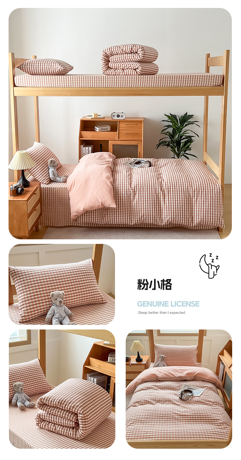 九沐良品 2025新款全棉纯棉色织水洗棉学生三件套宿舍三件套上下铺三件套 粉小格