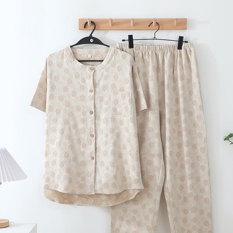 双梦毛巾 2025新款亚麻提花短袖长裤家居服睡衣 可外穿 可来样定做 清风女士