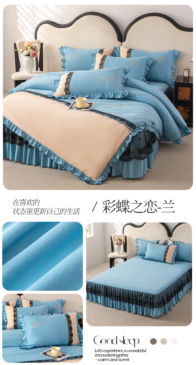 皇谱家纺 2025新款60sA类水洗棉床裙款四件套-彩蝶之恋 彩蝶之恋-兰