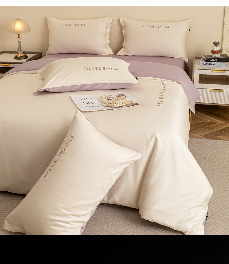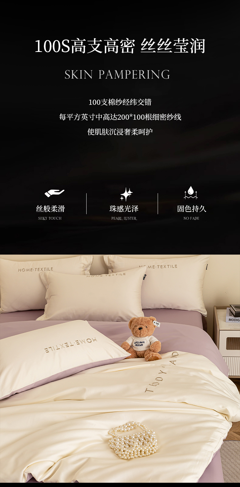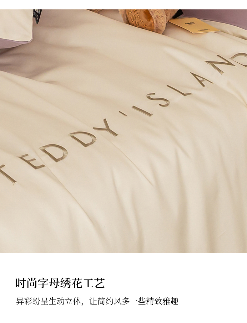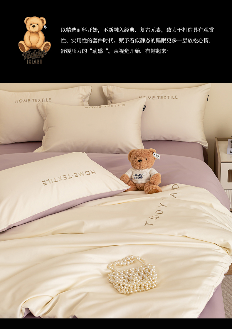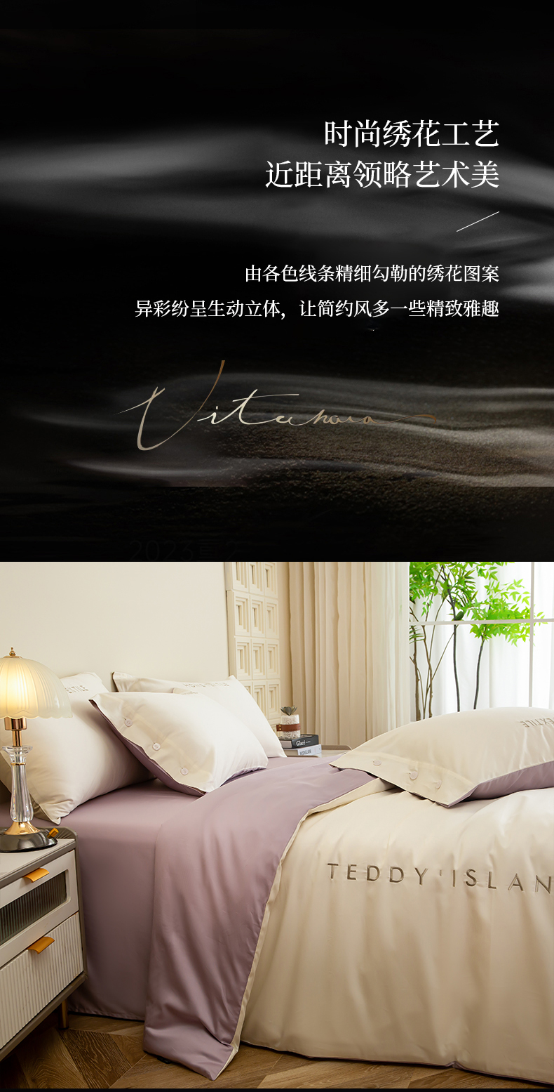 当前位置: 91家纺网 > 商品网购 > 床品套件 > 四件套 > 全棉活性四件套 > 泰迪爱兰Teddy 2025新款100支(50支)全棉贡缎字母绣花四件套 象牙白+加伦紫