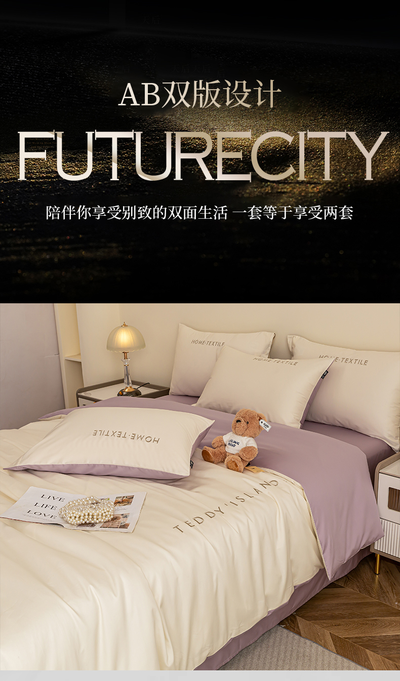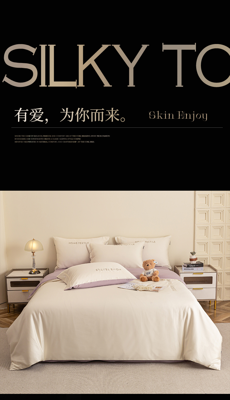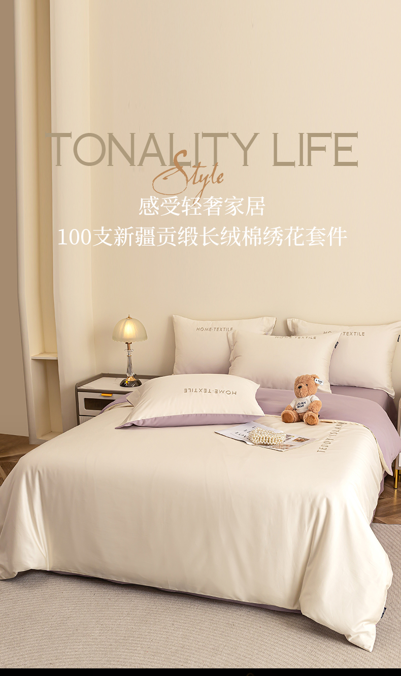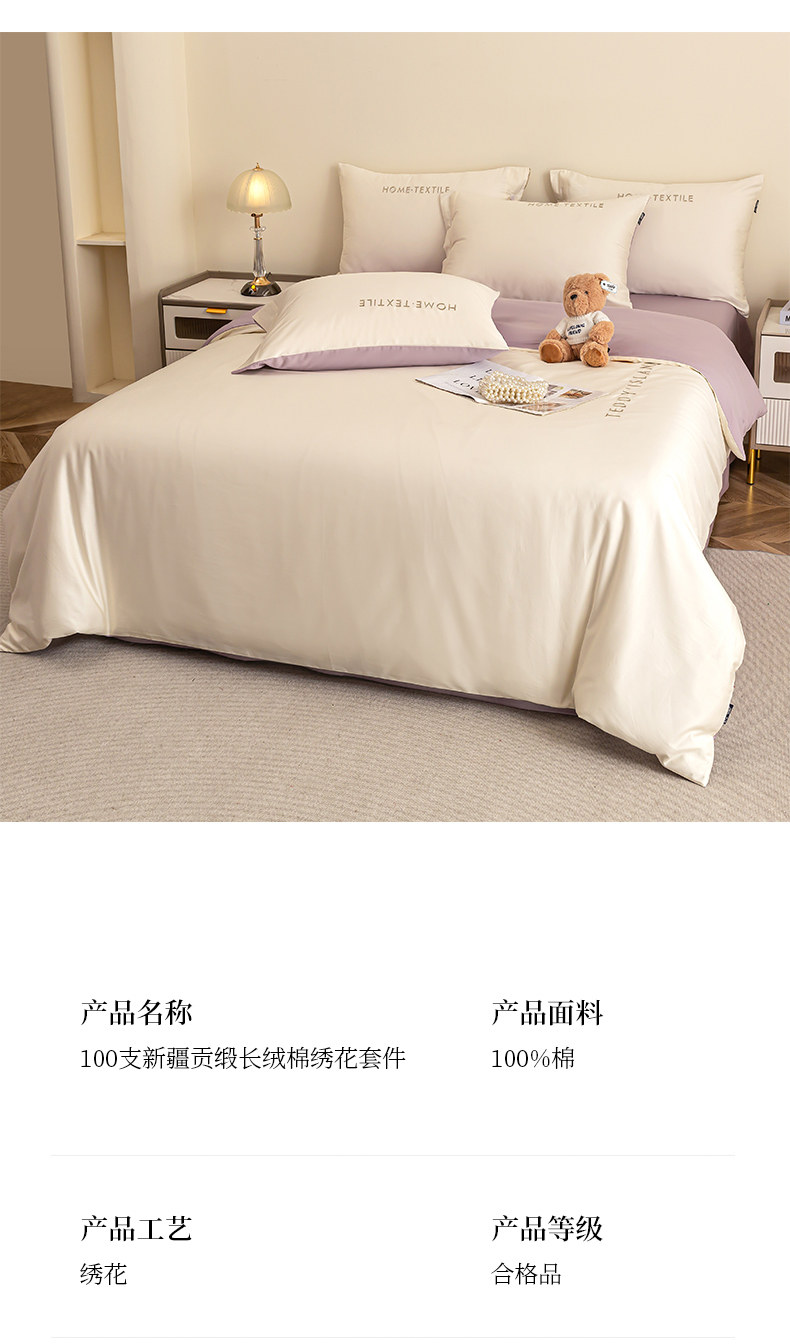 当前位置: 91家纺网 > 商品网购 > 床品套件 > 四件套 > 全棉活性四件套 > 泰迪爱兰Teddy 2025新款100支(50支)全棉贡缎字母绣花四件套 象牙白+加伦紫