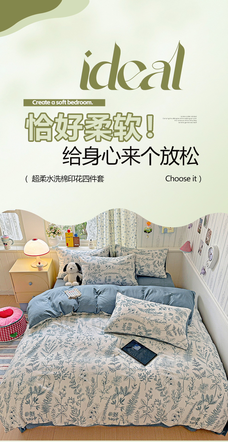 当前位置: 91家纺网 > 商品网购 > 床品套件 > 四件套 > 妖妖2025新款软糯水洗棉四件套 春野集