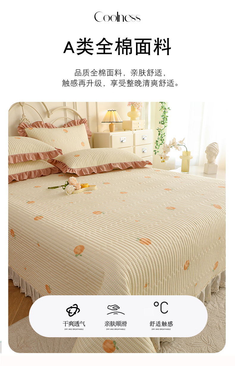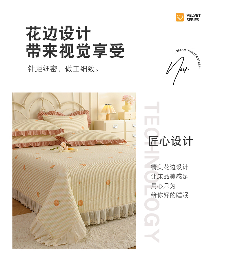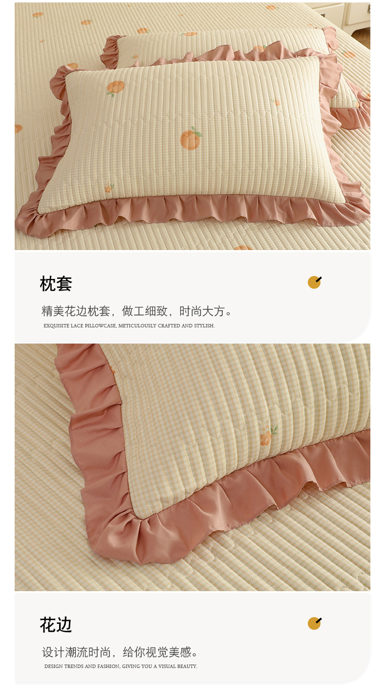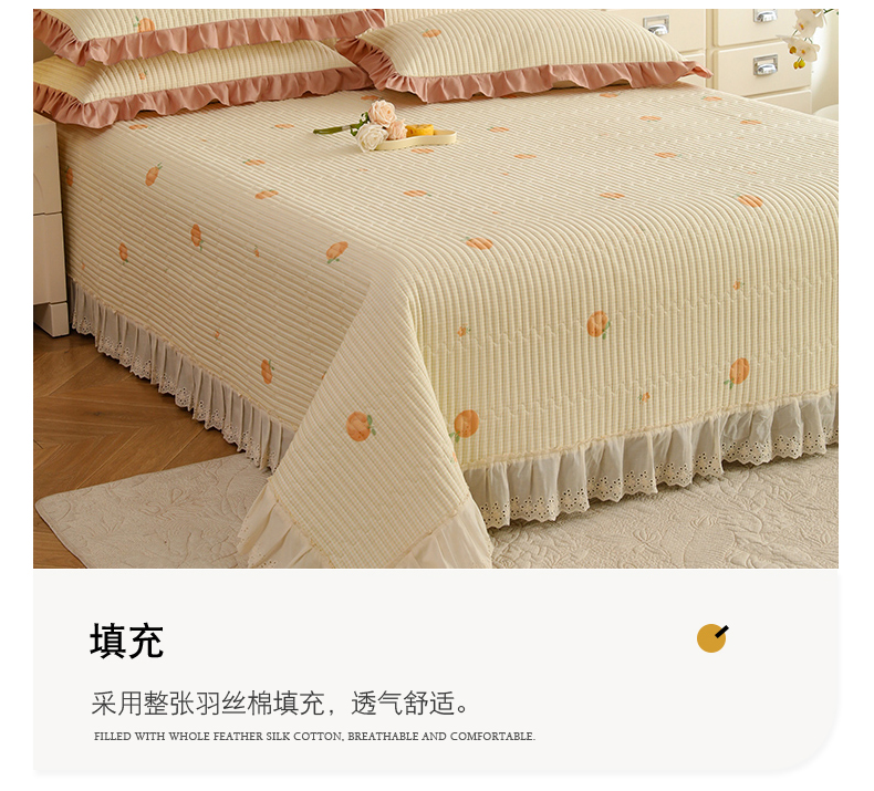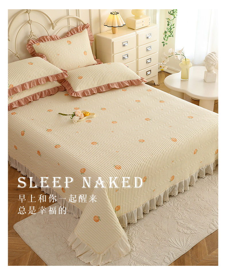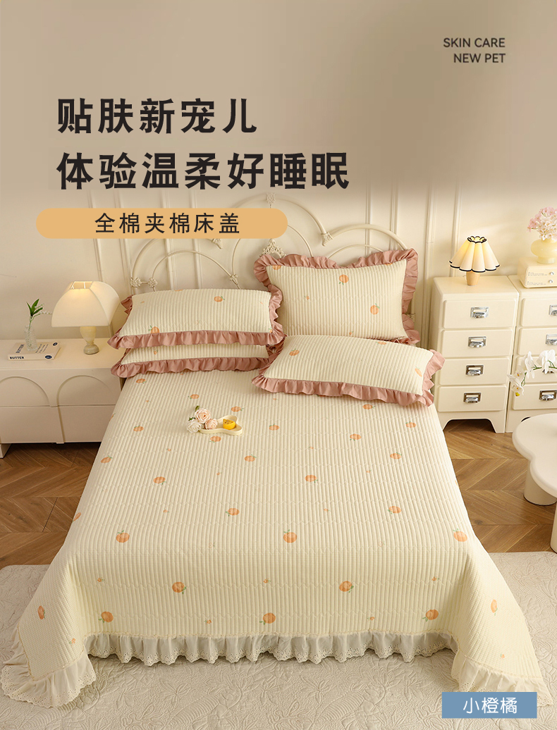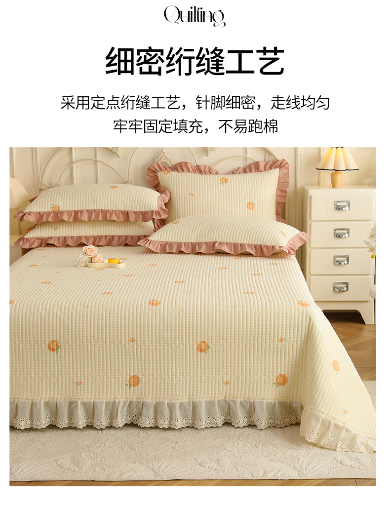 美达家纺 2025新款全棉夹棉密道款床盖单品床盖床盖单件 小橙橘