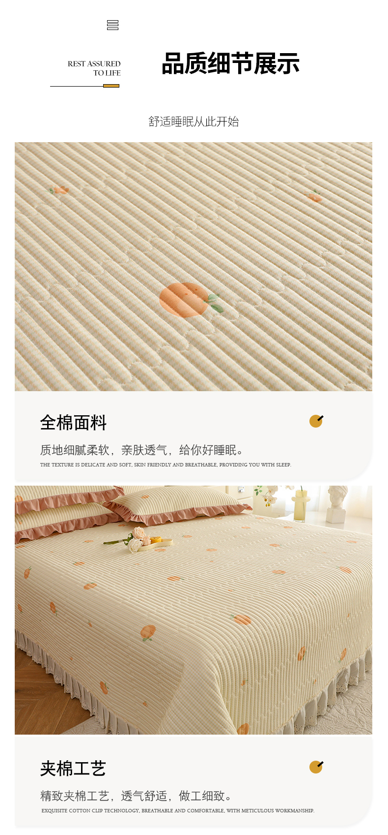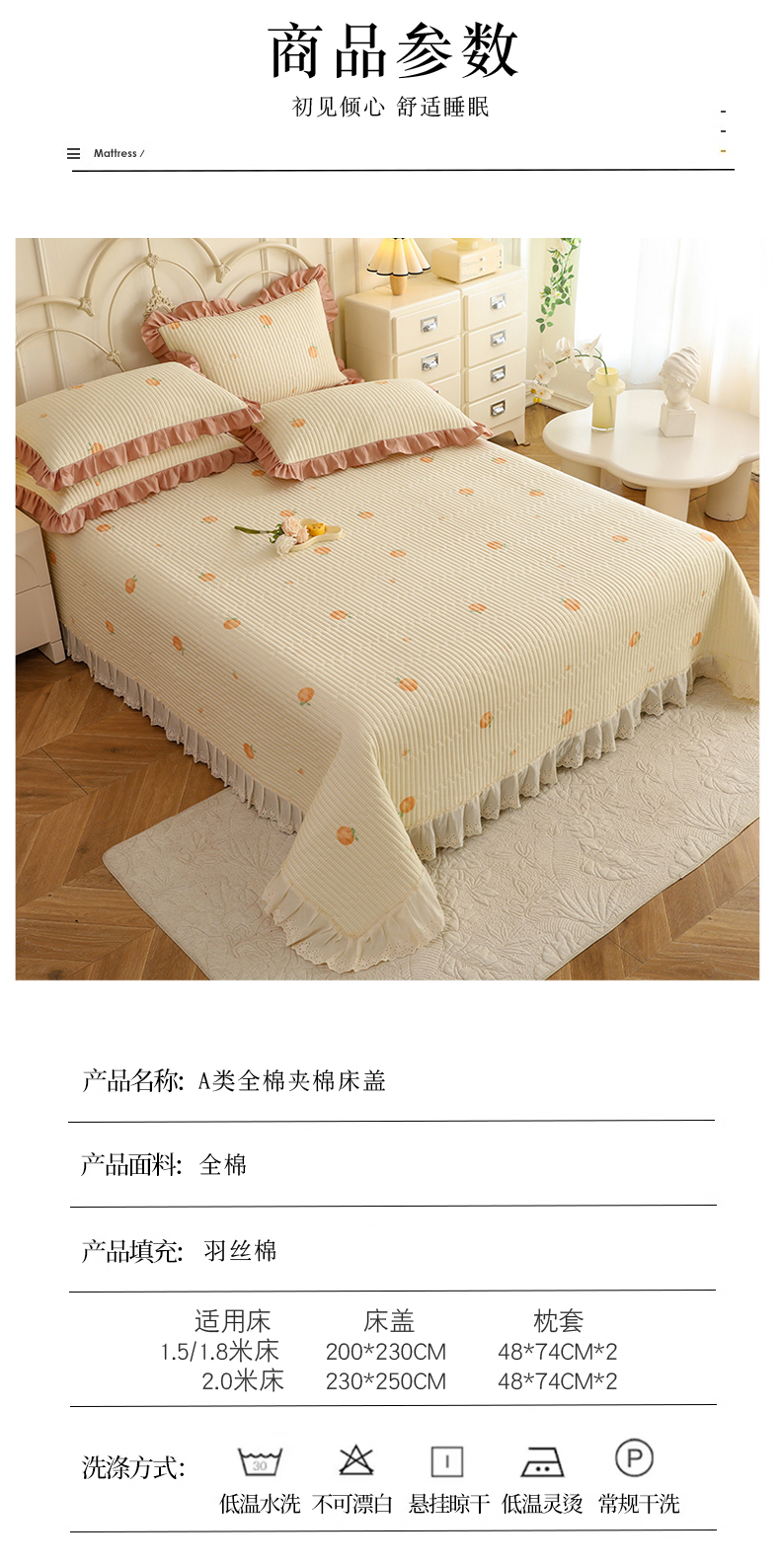 商品名称:美达家纺 2025新款全棉夹棉密道款床盖单品床盖床盖单件 小橙橘