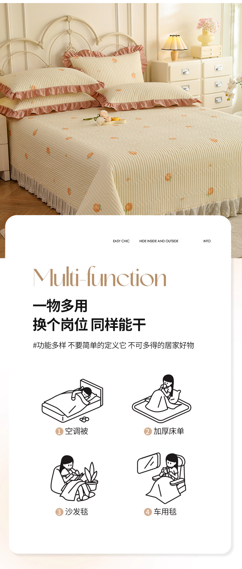 (总)美达家纺 2025新款全棉AB版单层床裙,解语花,南湘,沁雨花叶,悦棠