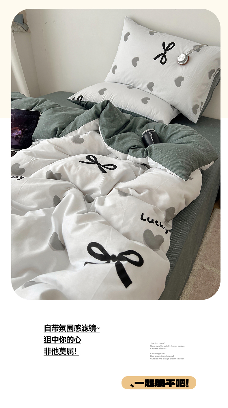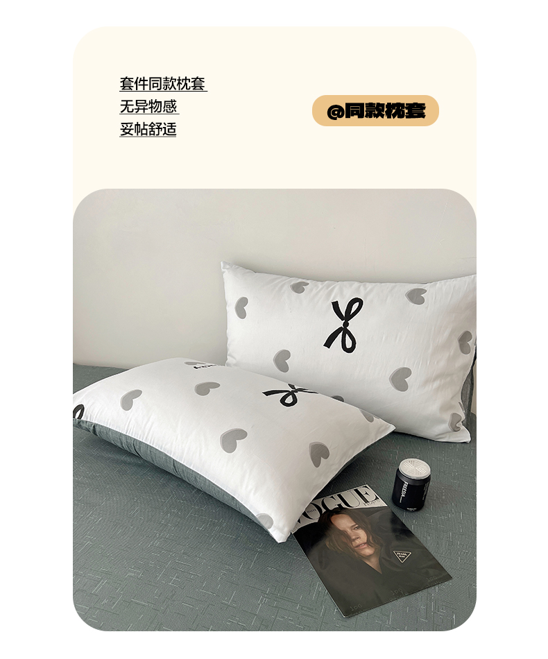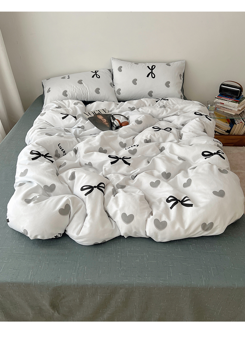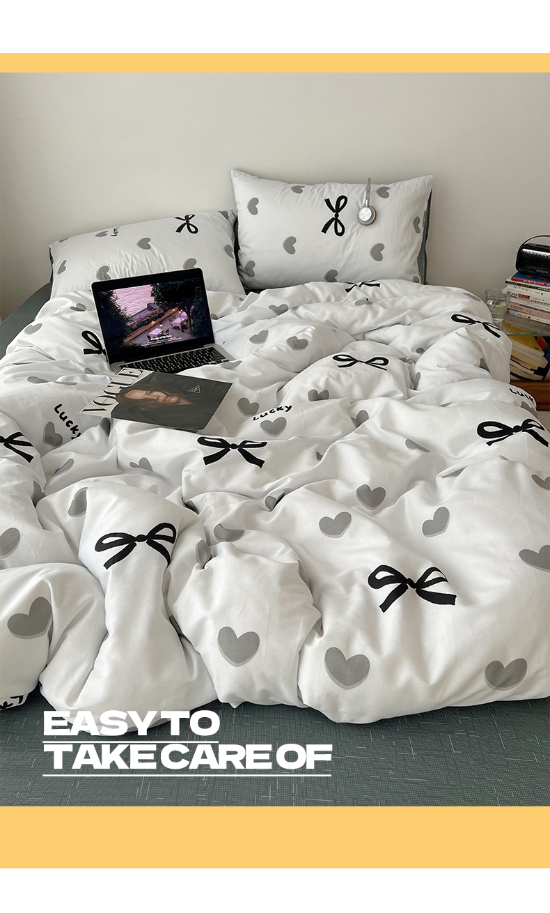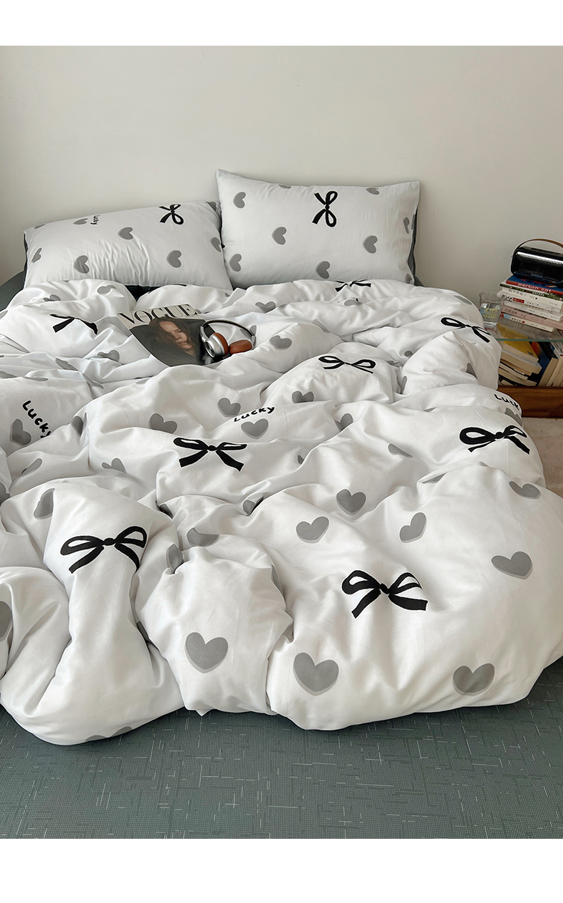当前位置: 91家纺网 > 商品网购 > 床品套件 > 四件套 > 全棉普通四件套 > 雅居纺家纺 2025春夏新款全棉纯棉印花四件套 爱心蝴蝶结