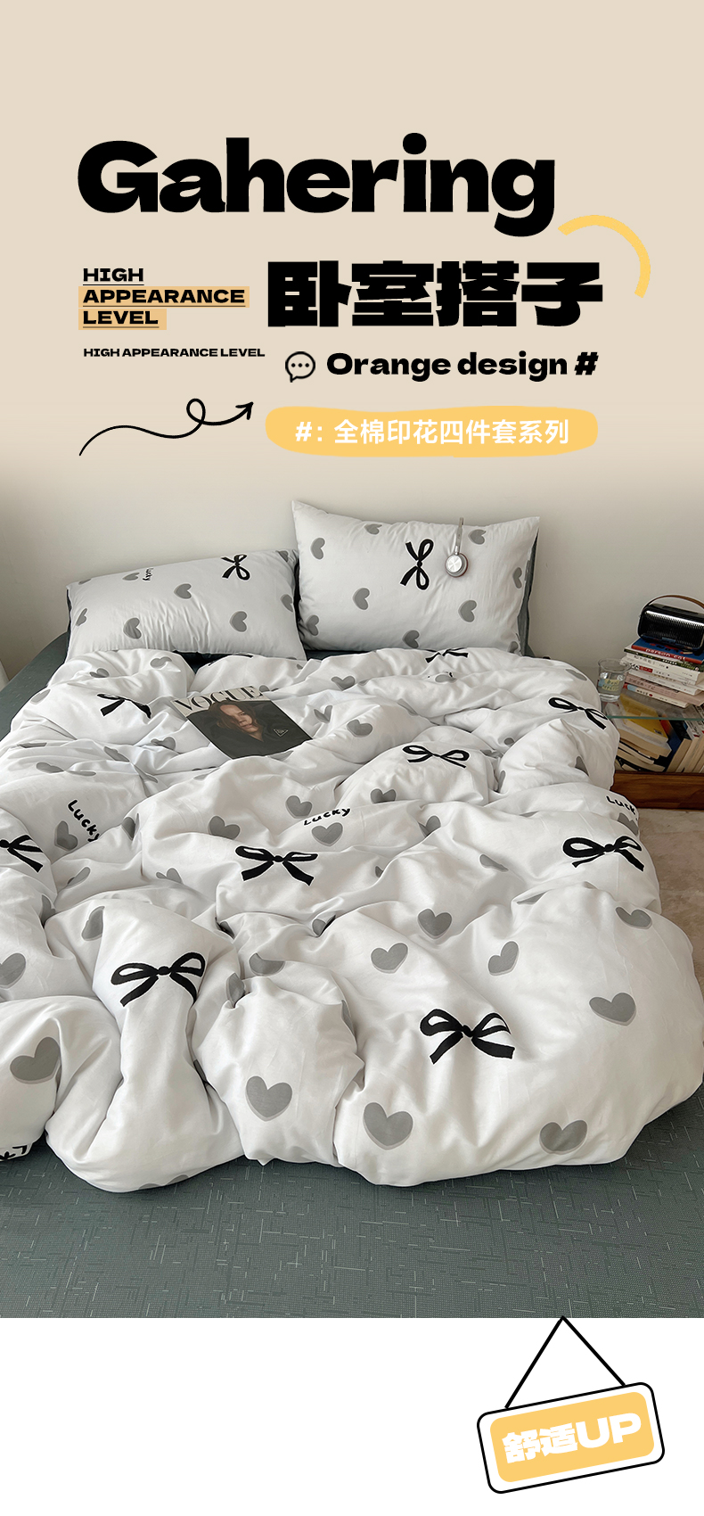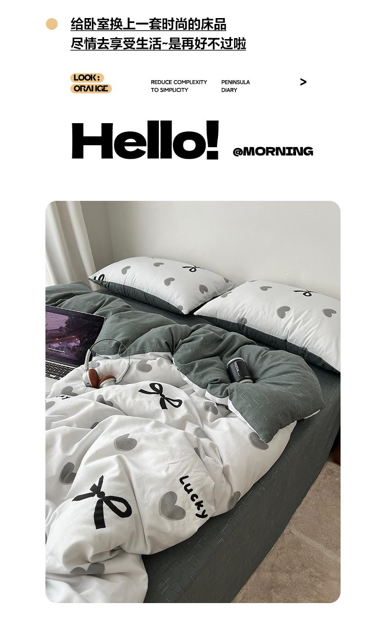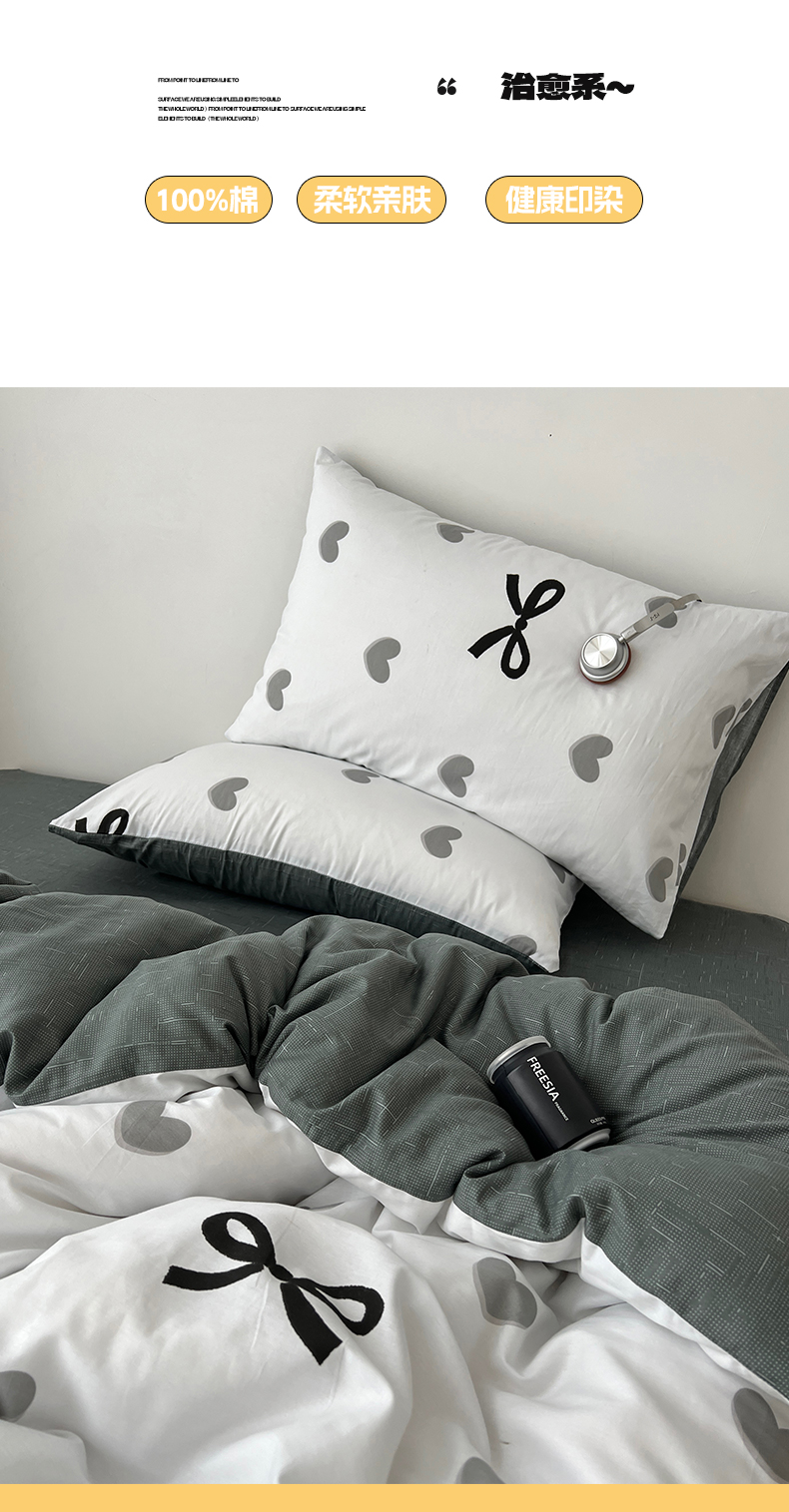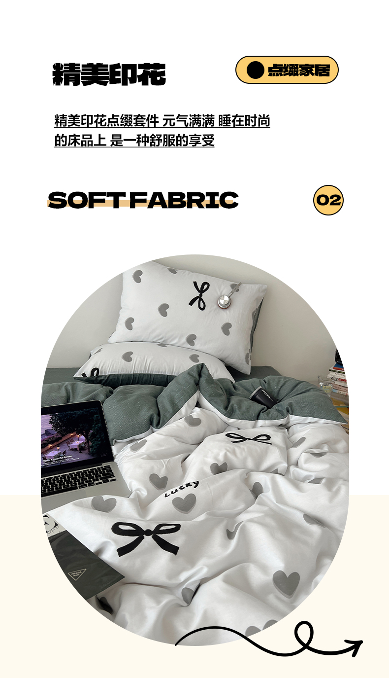 当前位置: 91家纺网 > 商品网购 > 床品套件 > 四件套 > 全棉普通四件套 > 雅居纺家纺 2025春夏新款全棉纯棉印花四件套 爱心蝴蝶结