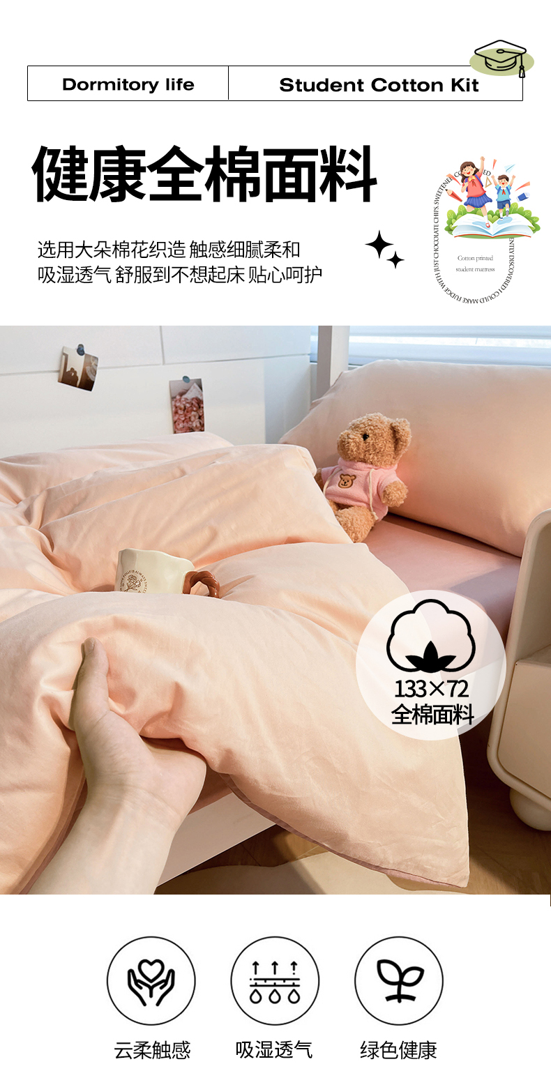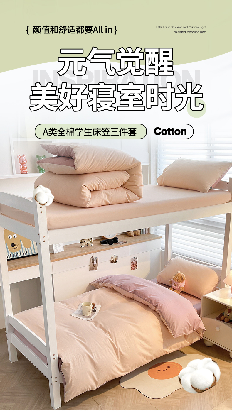当前位置: 91家纺网 > 商品网购 > 床品套件 > 三件套 > 澳梵家居 2025春夏新款13372全棉纯棉学生宿舍上下铺三件套床笠款 卡其 雾粉