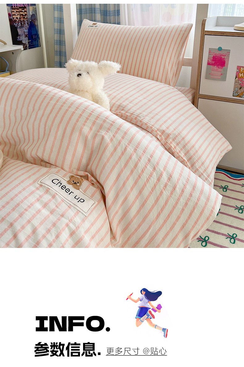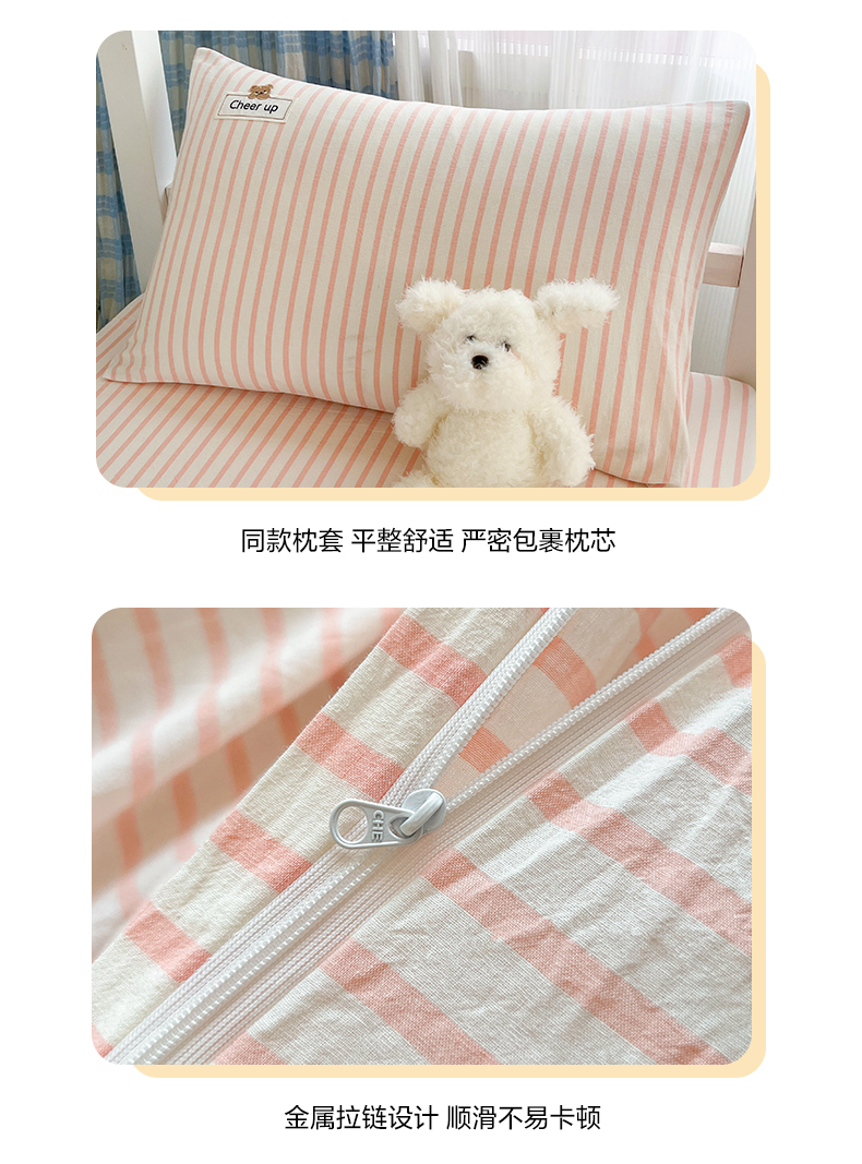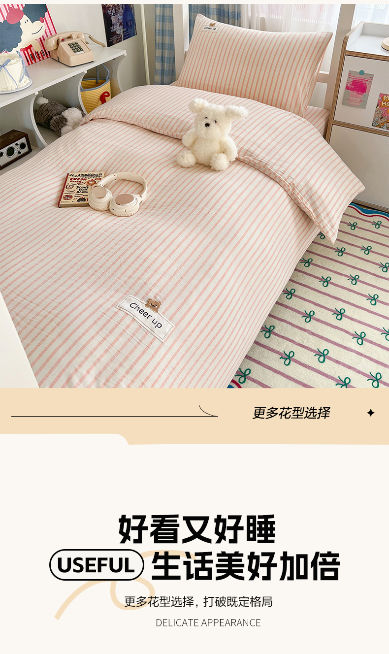 商品名称:佳笠家居 2025新款kimi熊系列A类宿舍全棉纯棉色织水洗棉学生三件套 幽径-粉