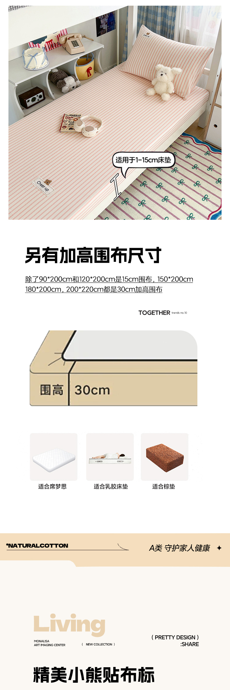(总)佳笠家居 2026年新款kimi熊a类全棉色织水洗棉大尺寸单床笠,粉红小格,果绿小条,黑白格,灰小格,卡其小条,香芋紫格,野原-蓝,野原-绿,幽径-粉,丈蓝小条,组合