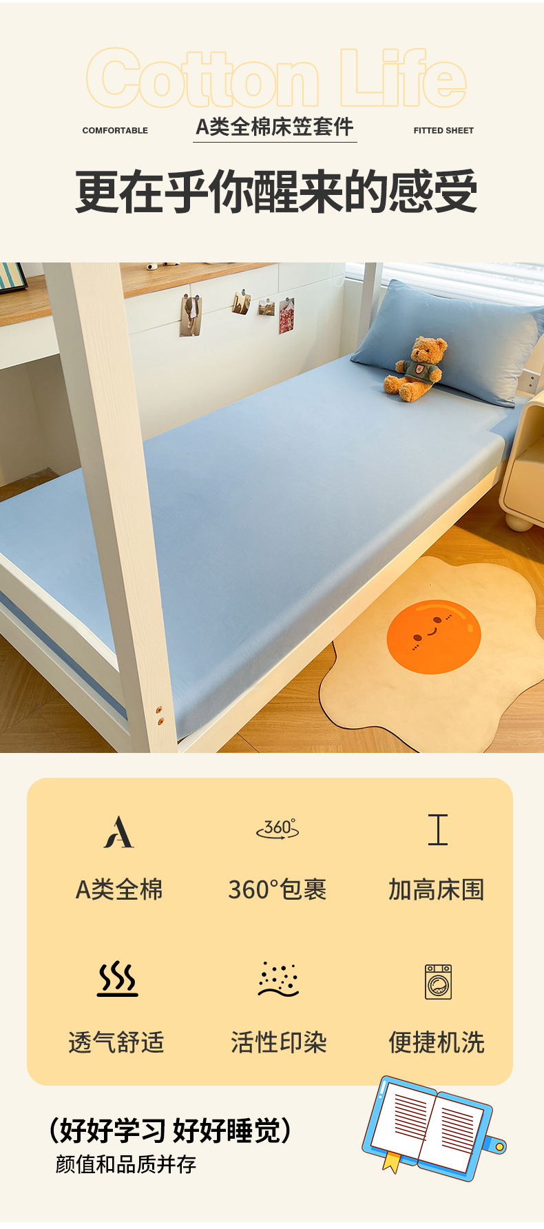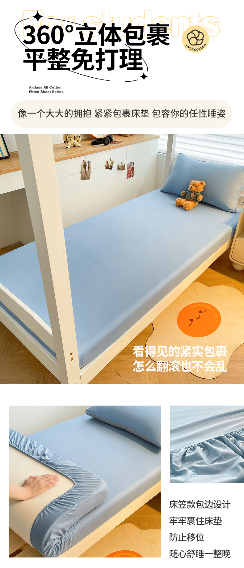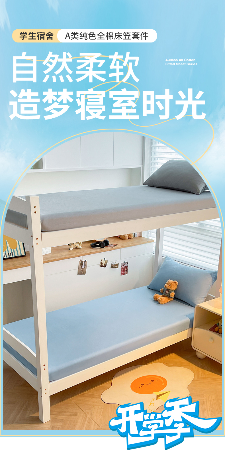 澳梵家居 2025春夏新款13372全棉纯棉学生宿舍上下铺单床笠床笠单件 梦蓝