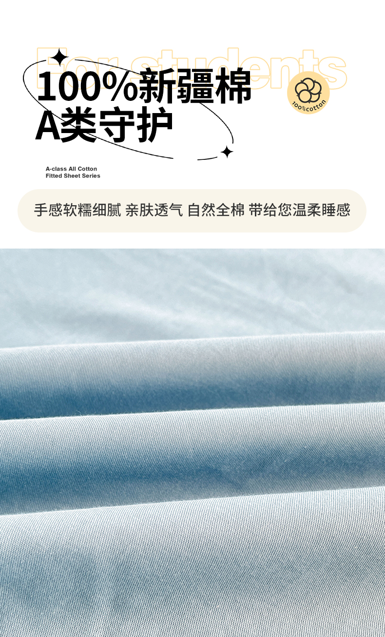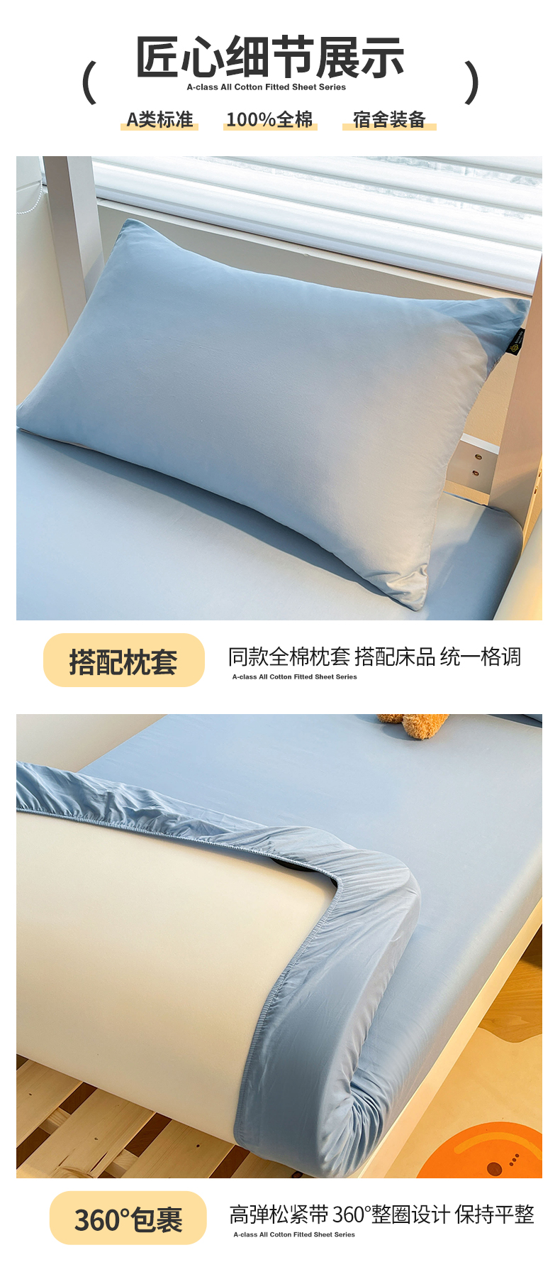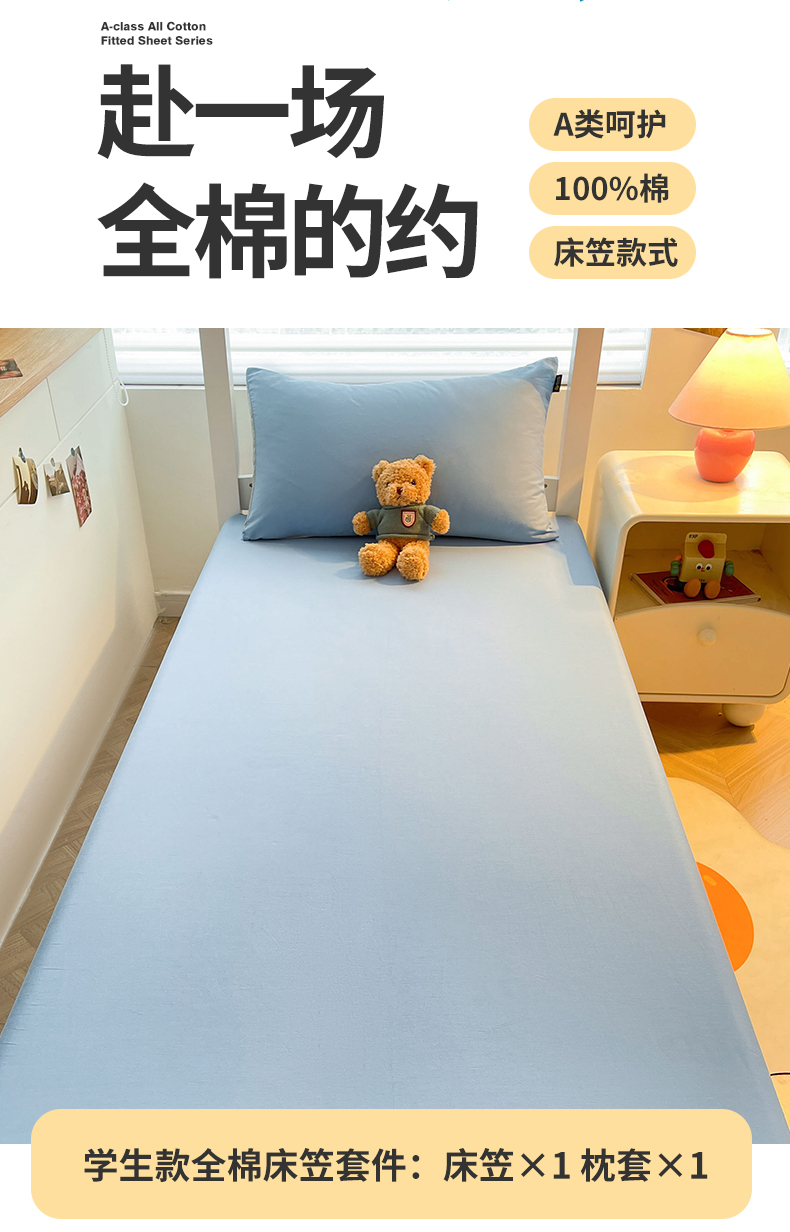 澳梵家居 2025春夏新款13372全棉纯棉学生宿舍上下铺单床笠床笠单件 梦蓝