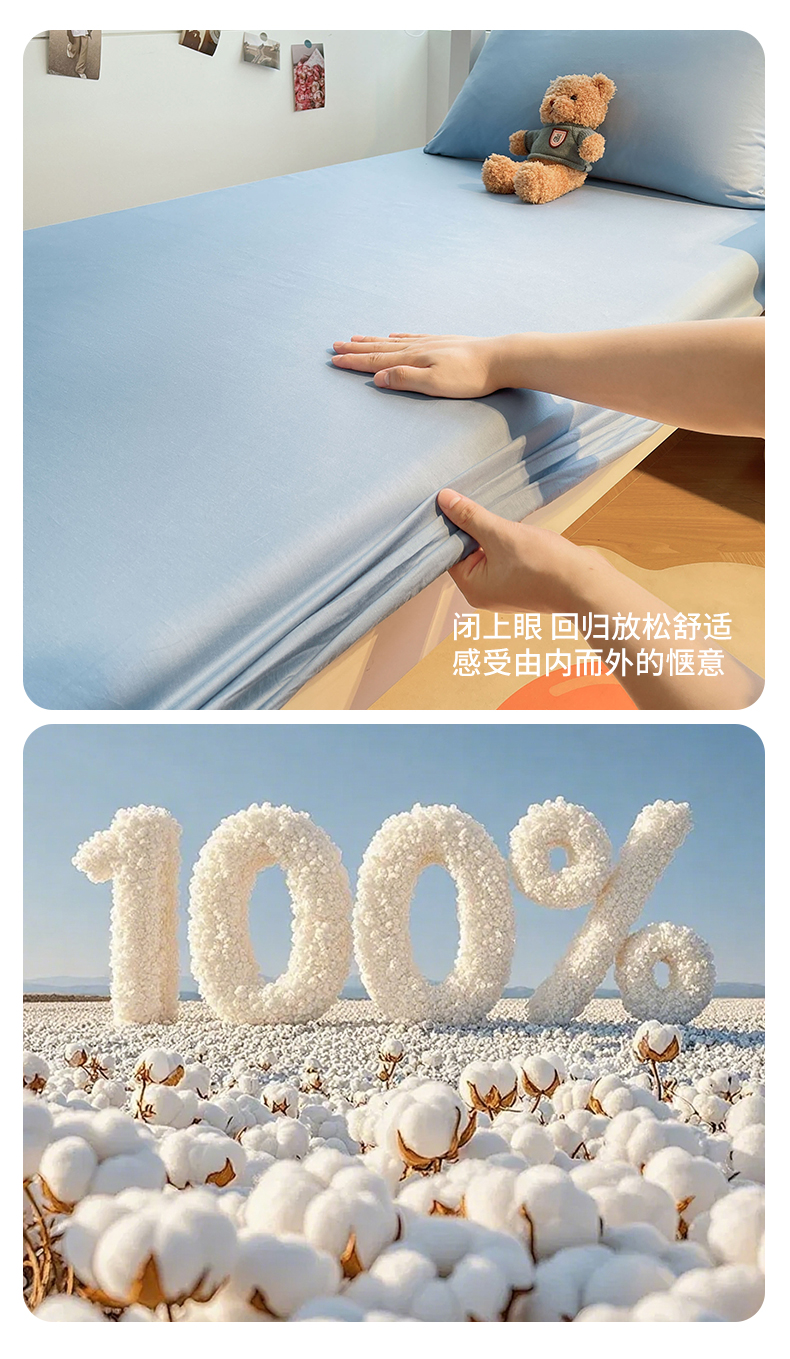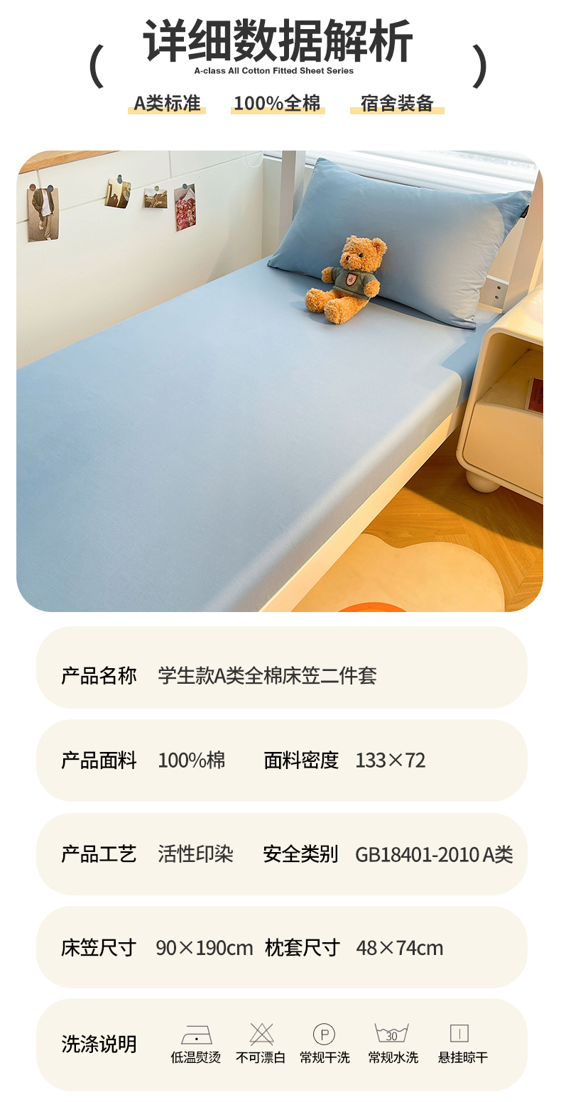 • 91家纺网 家纺一手货源 找家纺 澳梵家居 2025春夏新款13372全棉纯棉学生宿舍上下铺单床笠床笠单件 梦蓝