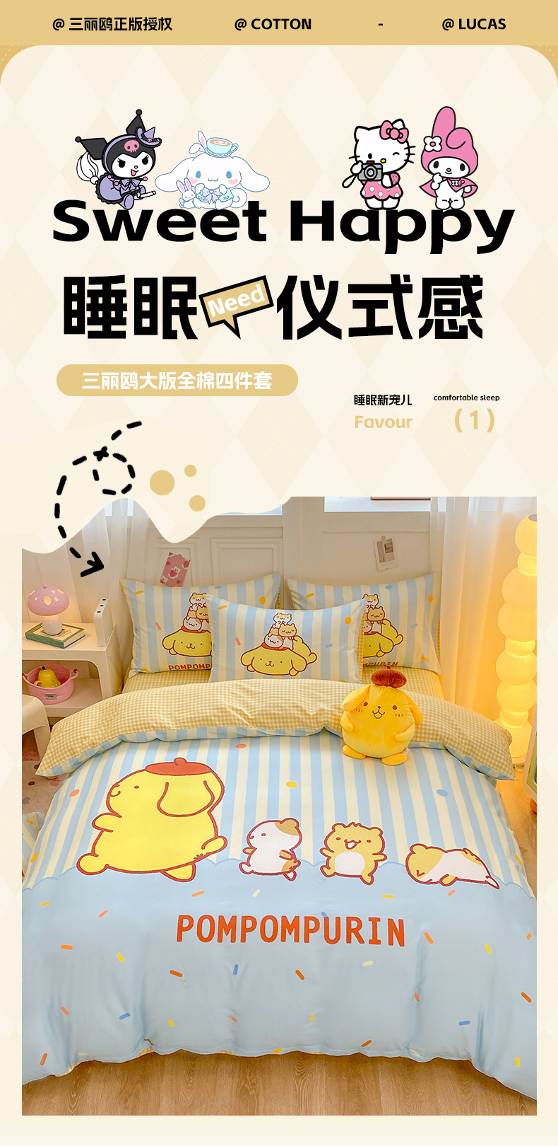 当前位置: 91家纺网 > 商品网购 > 床品套件 > 四件套 > 全棉普通四件套 > 博雅 2025春夏新款全棉纯棉三丽欧新款大板四件套 全棉大版(口袋枕)小彩带布丁狗