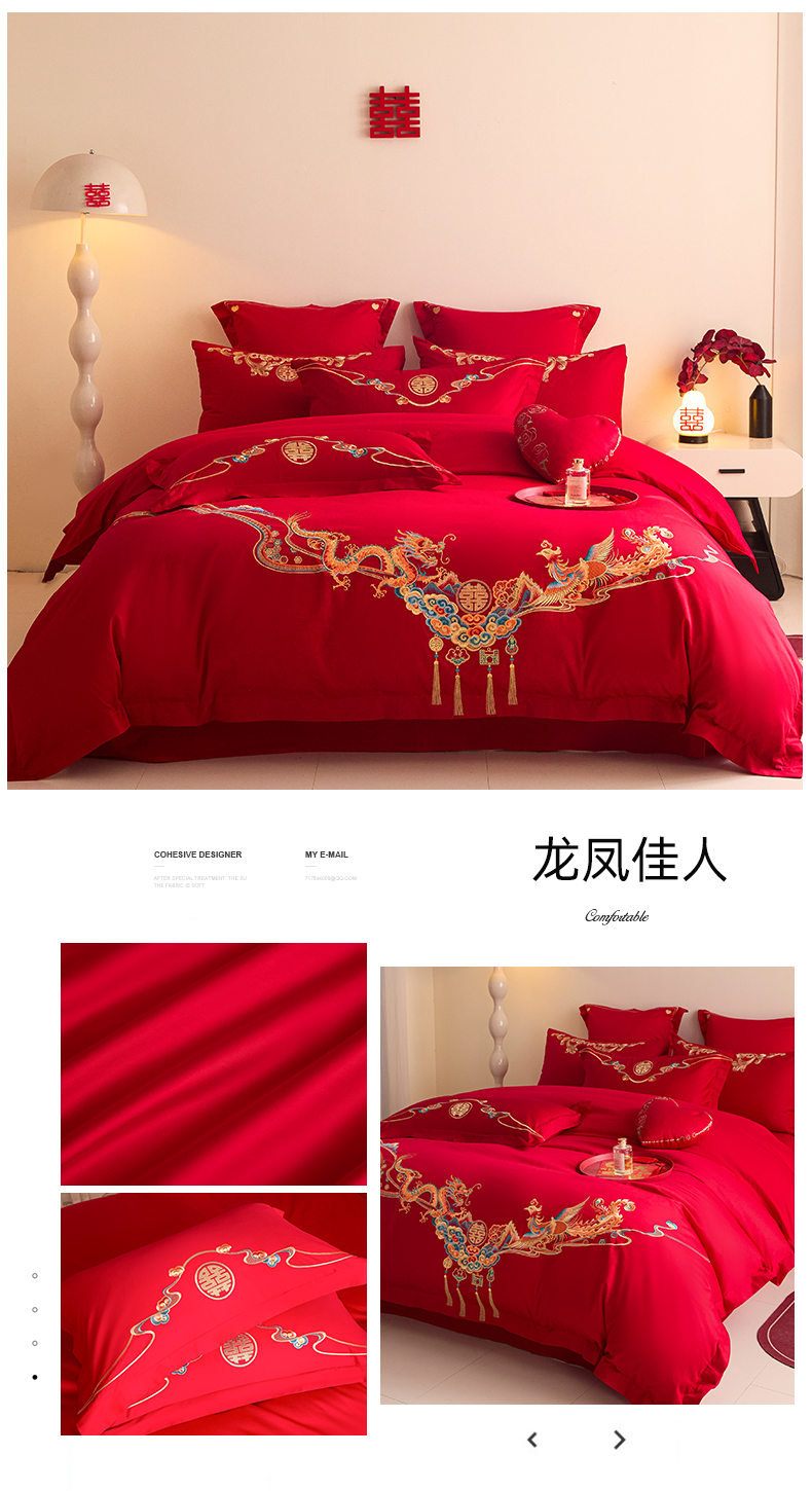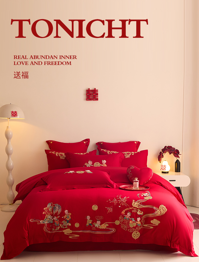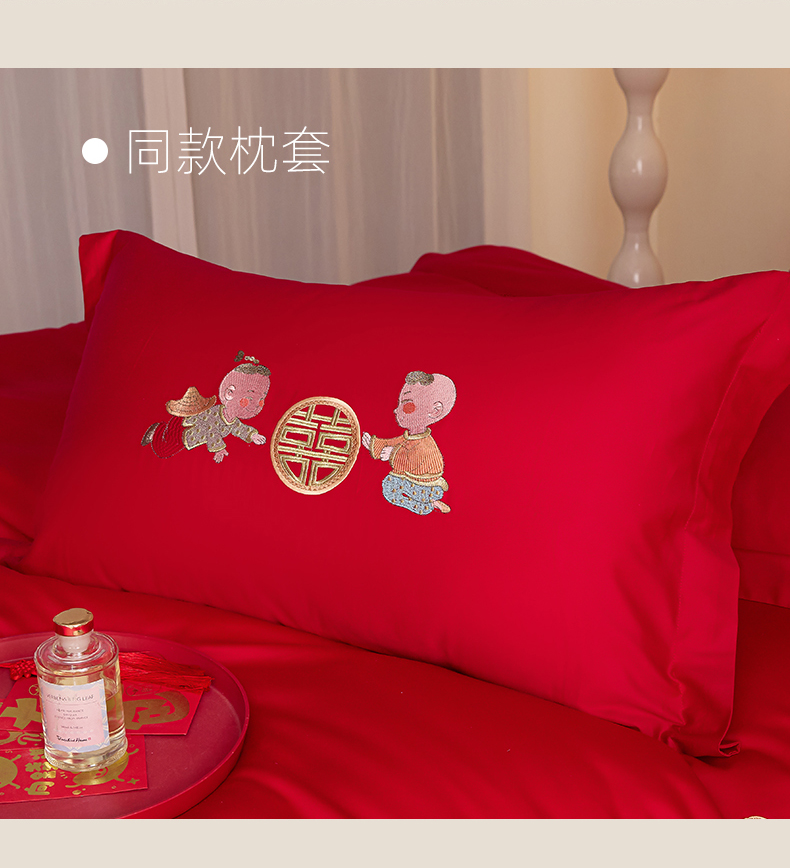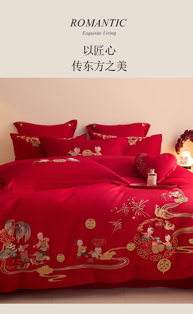 当前位置: 91家纺网 > 商品网购 > 床品套件 > 四件套 > 婚庆四件套 > 东方合美(原:皇家传奇) 2025新款长绒棉纯棉婚庆刺绣小红书系列四件套 送福