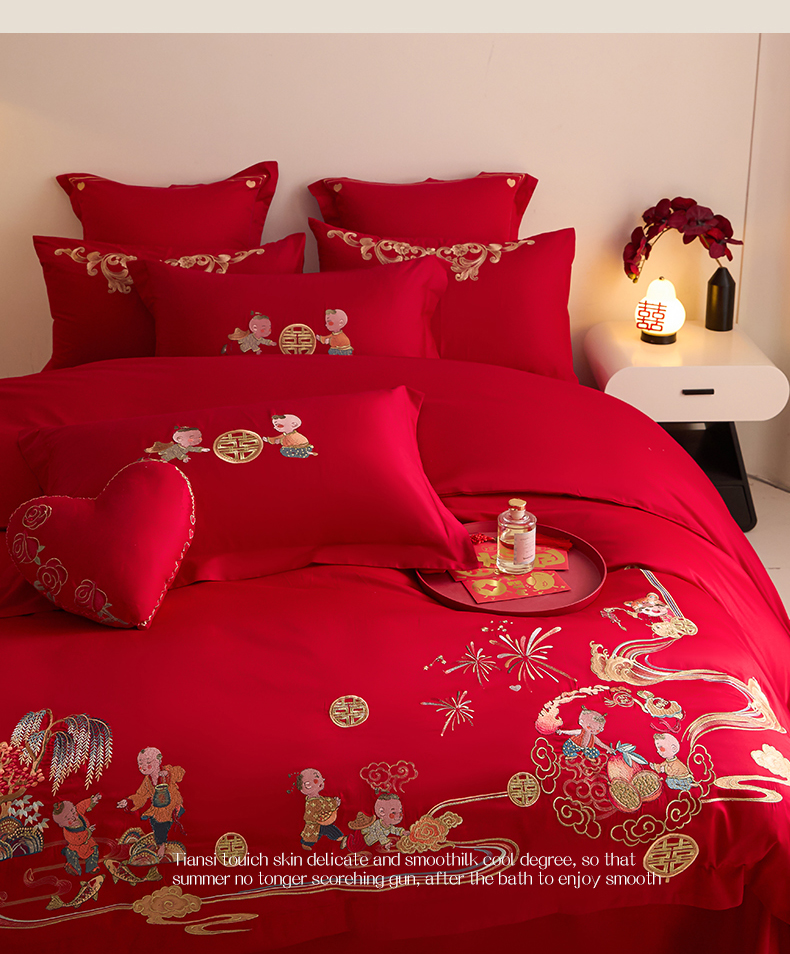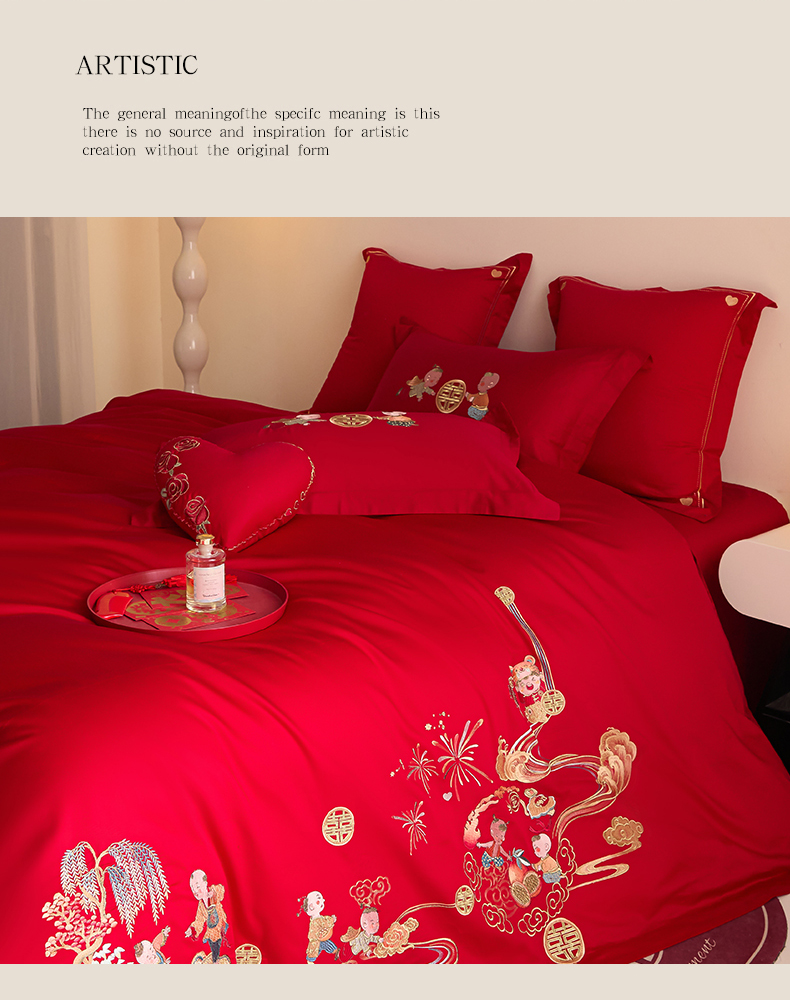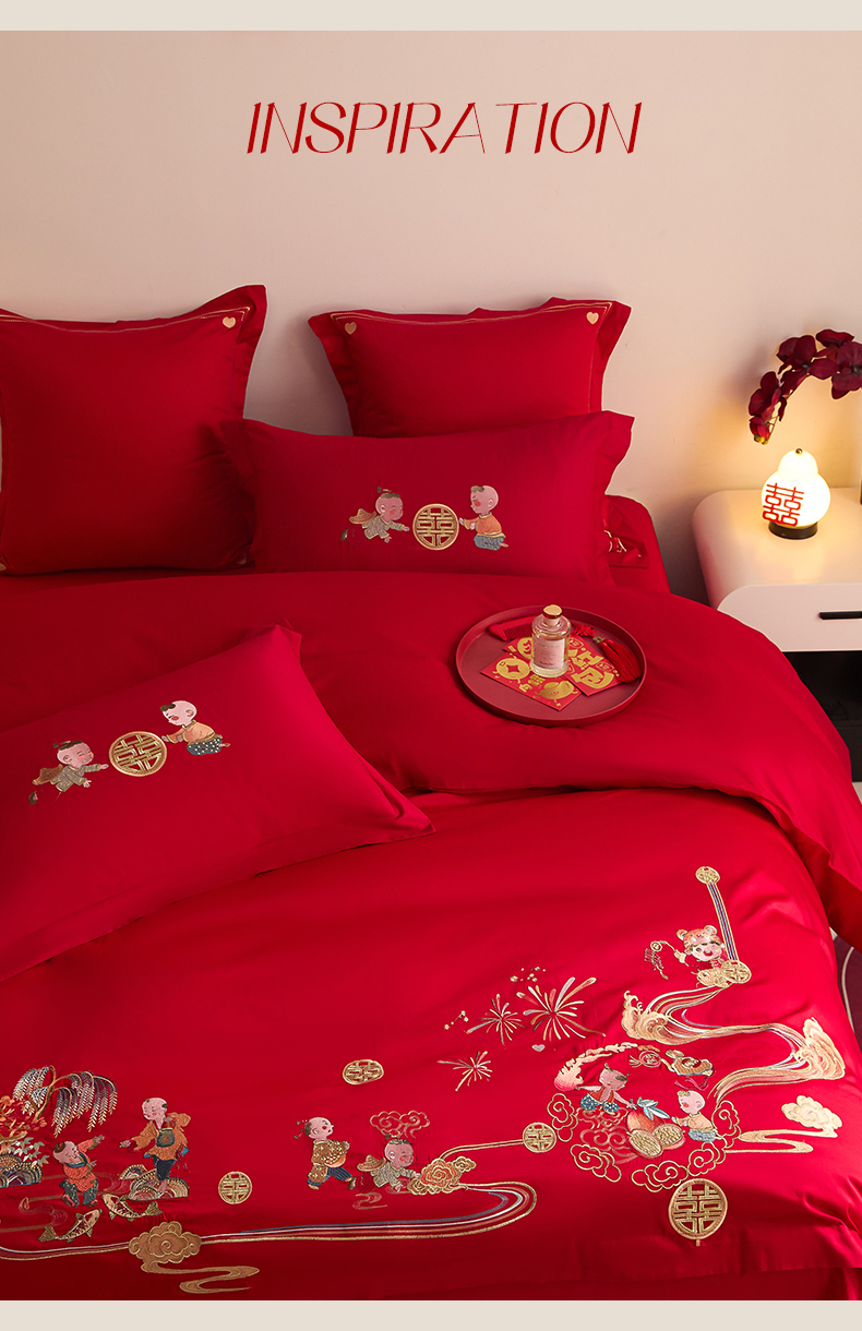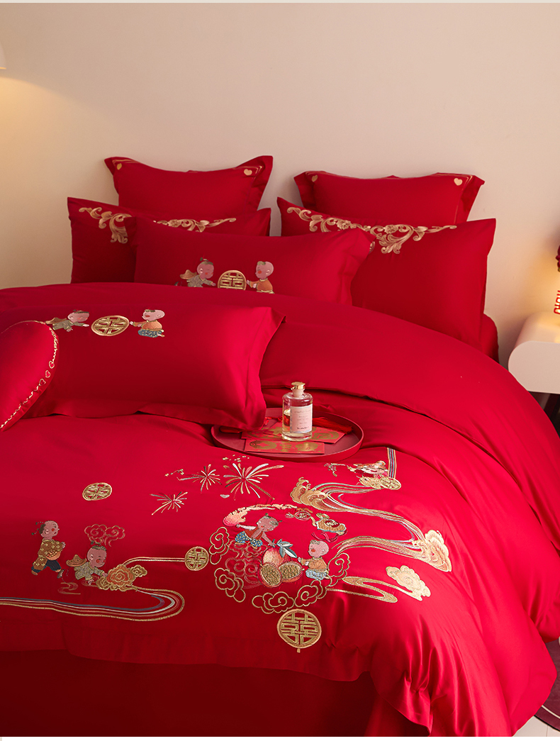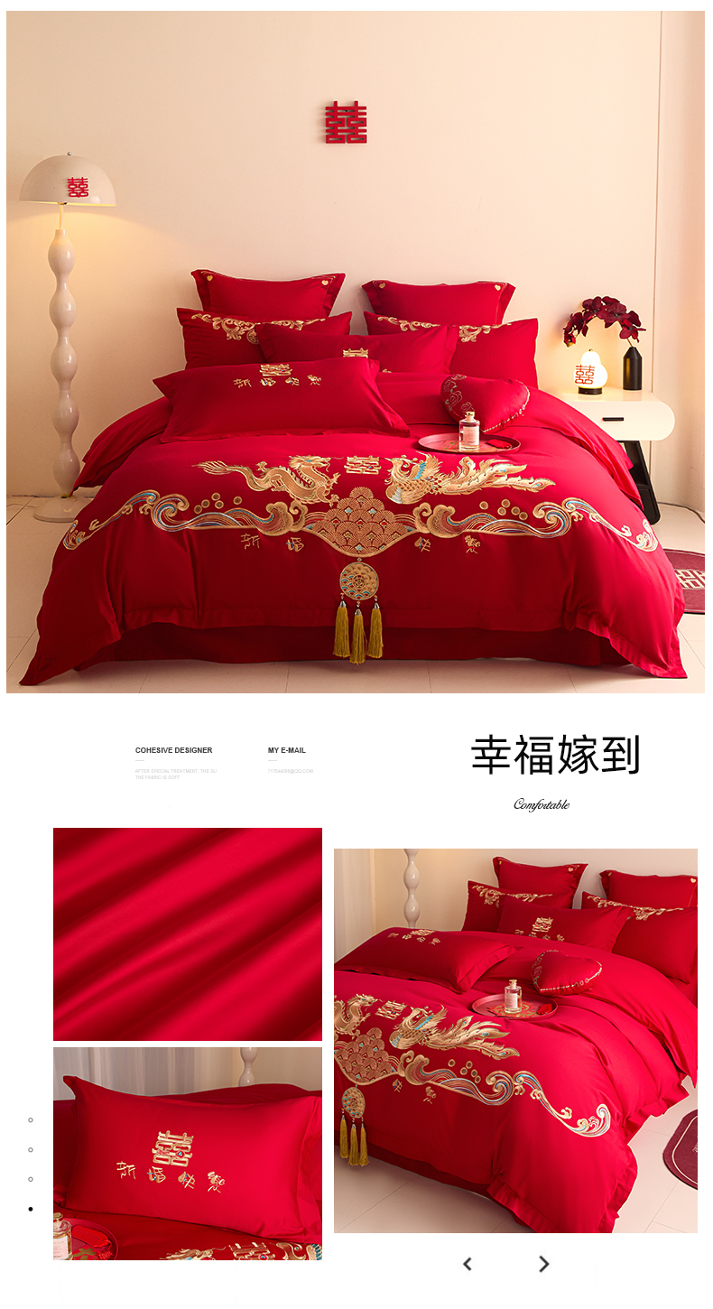当前位置: 91家纺网 > 商品网购 > 床品套件 > 四件套 > 婚庆四件套 > 东方合美(原:皇家传奇) 2025新款长绒棉纯棉婚庆刺绣小红书系列四件套 送福