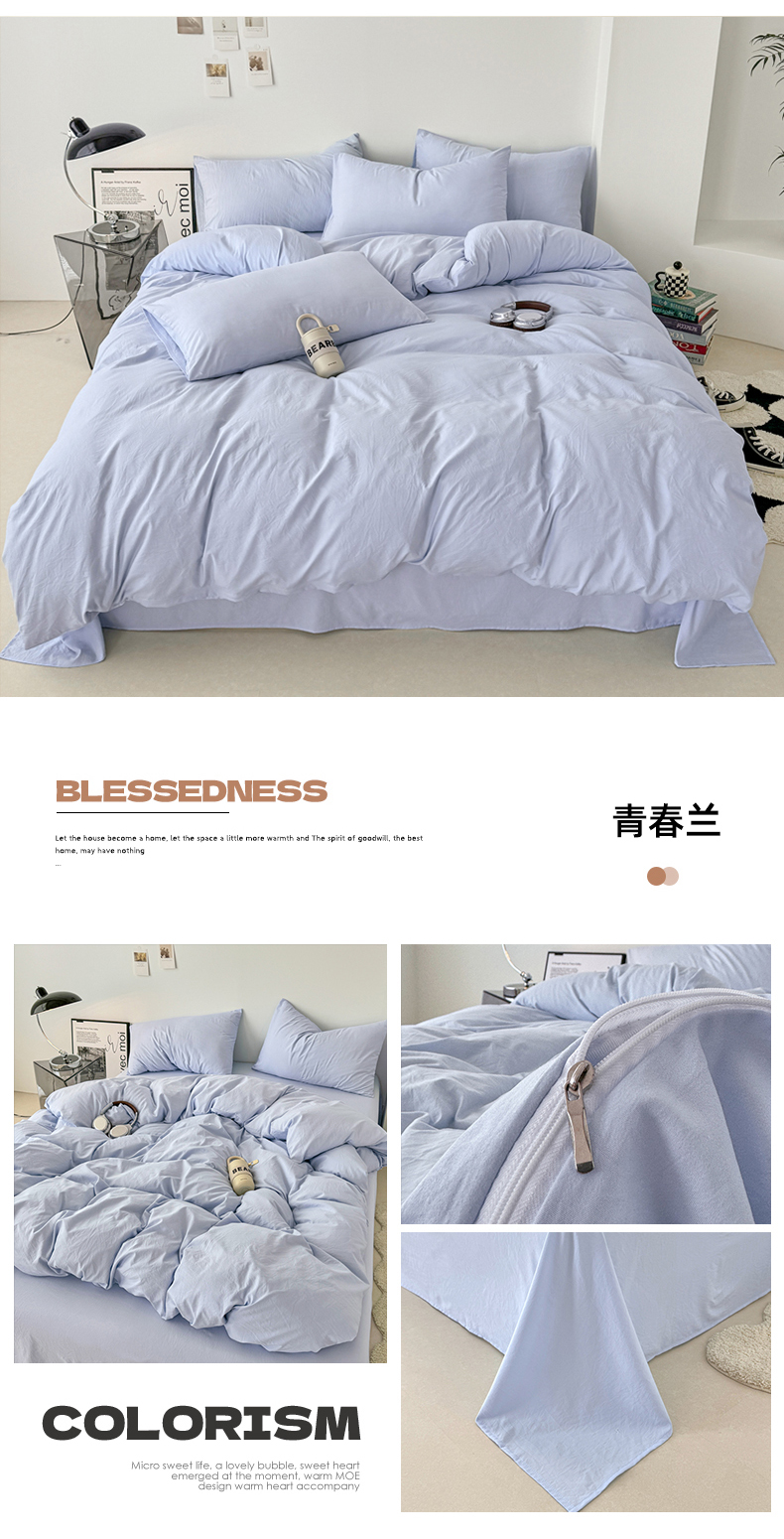 当前位置: 91家纺网 > 商品网购 > 床品套件 > 四件套 > 水洗棉四件套 > 芷凡家纺 2025新款A类加厚水洗棉云朵棉四件套 青春兰