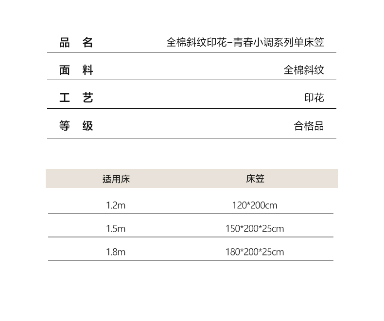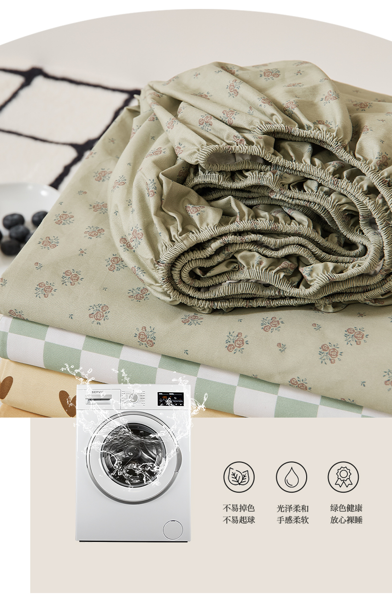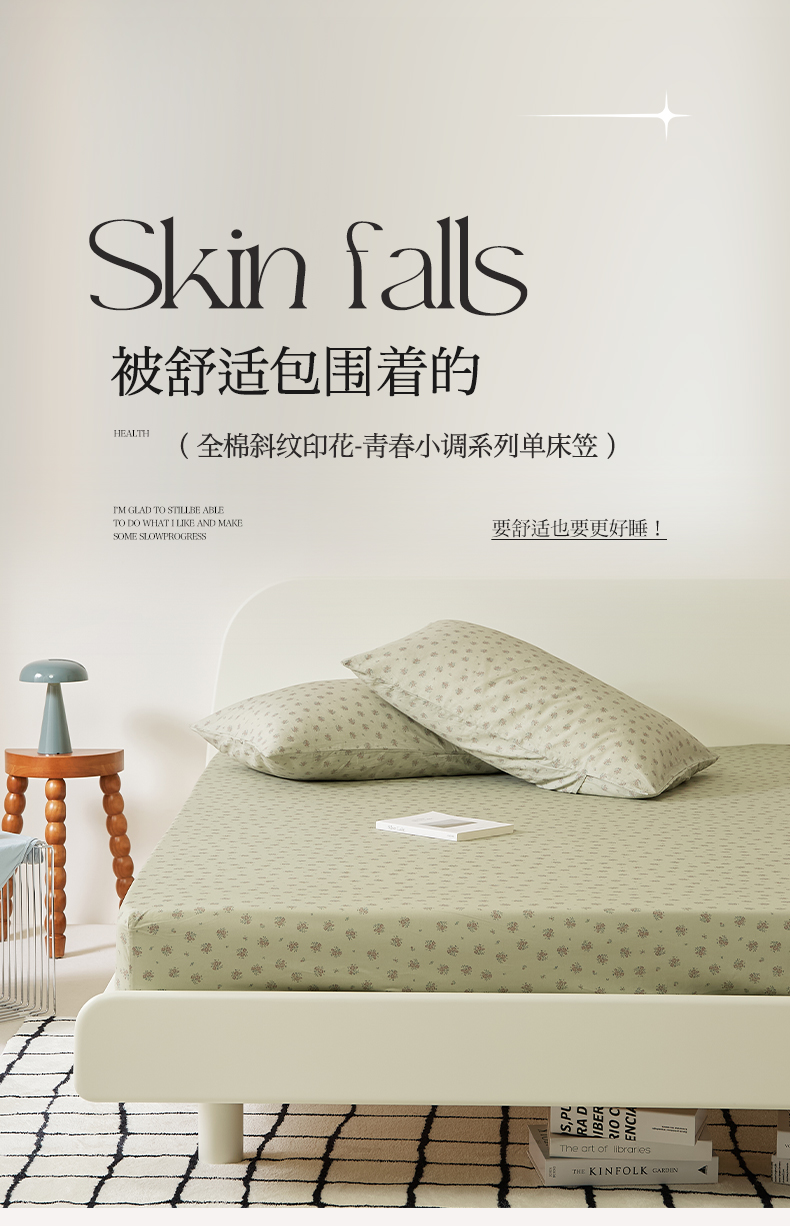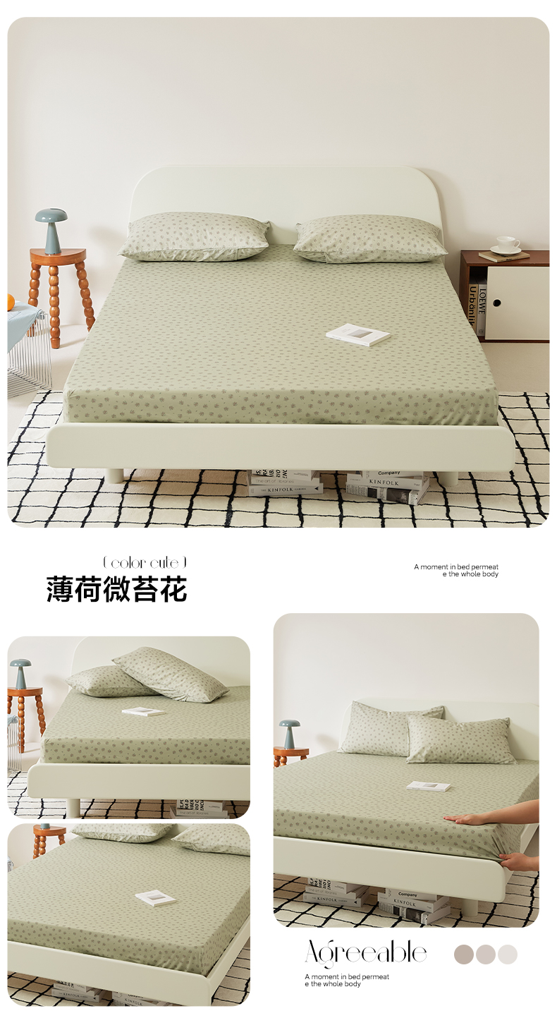 EH家居 2025新款全棉斜纹印花-青春小调系列单床笠 薄荷微苔花