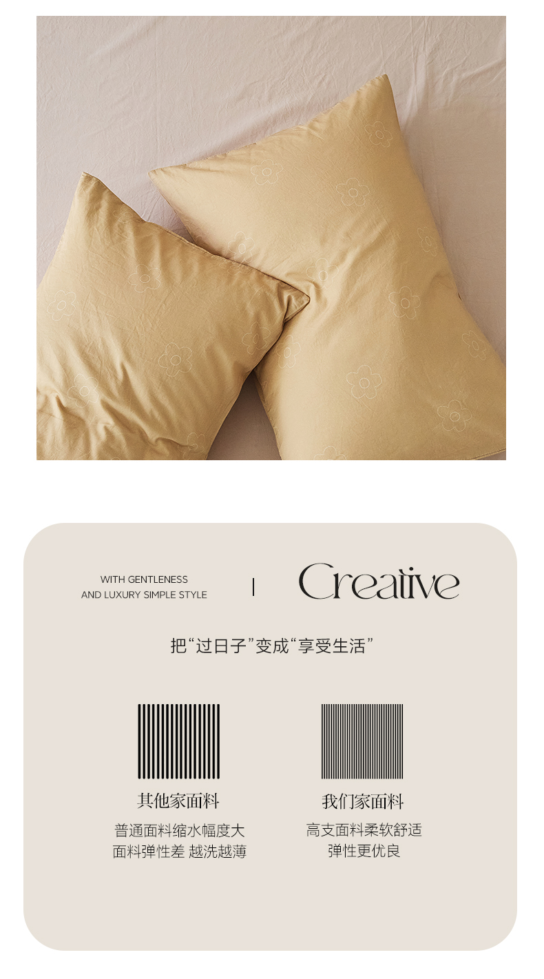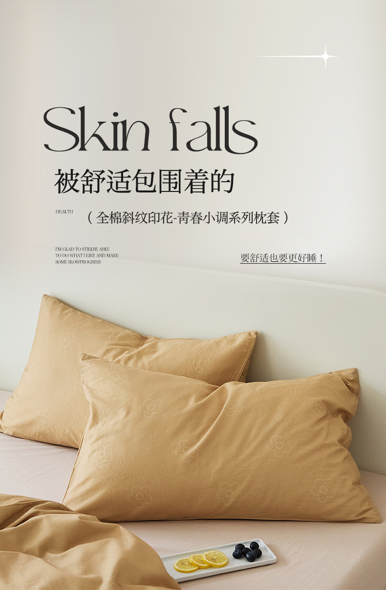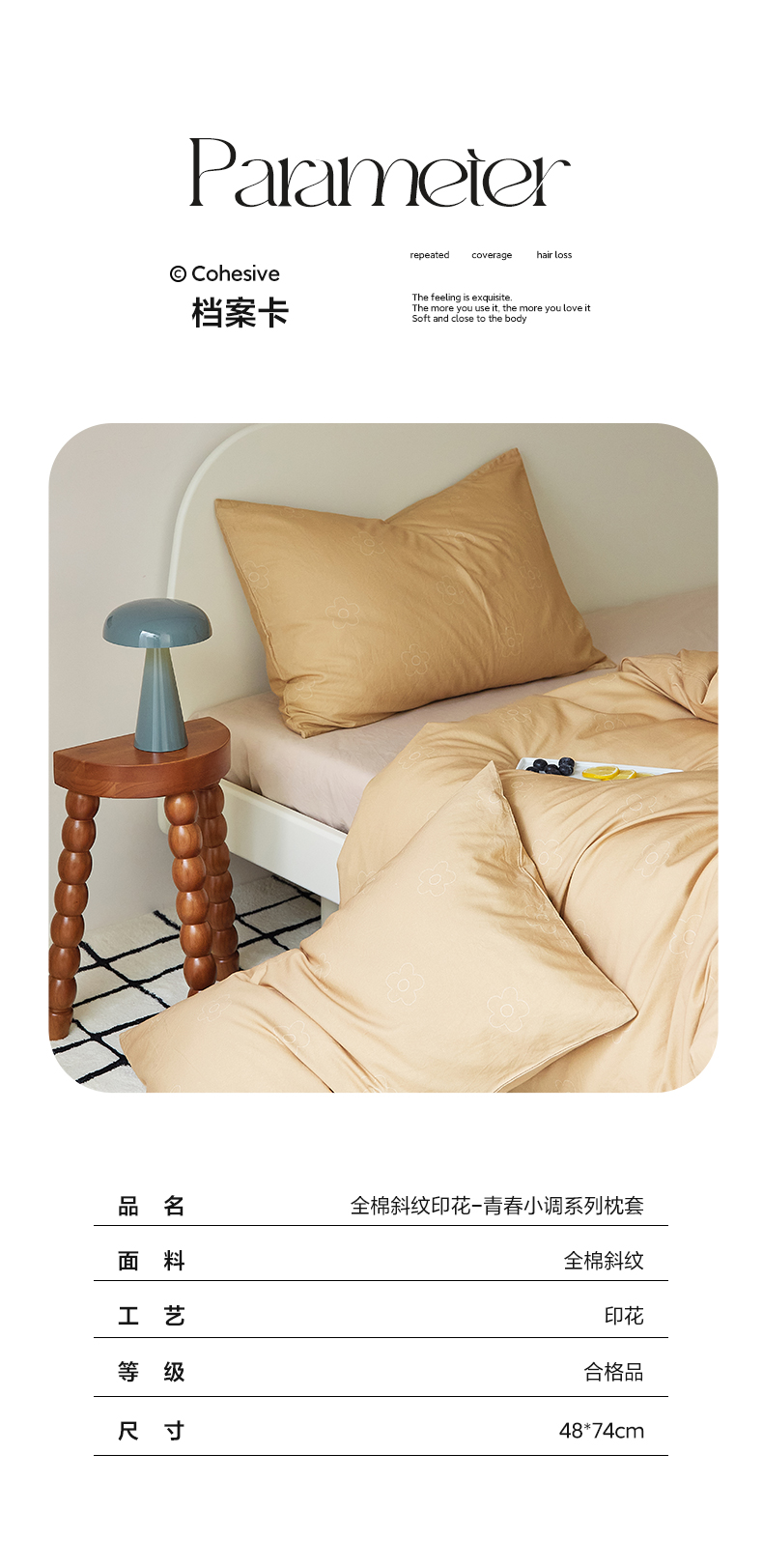 商品名称:EH家居 2025新款全棉斜纹印花-青春小调系列单枕套 可可饼干