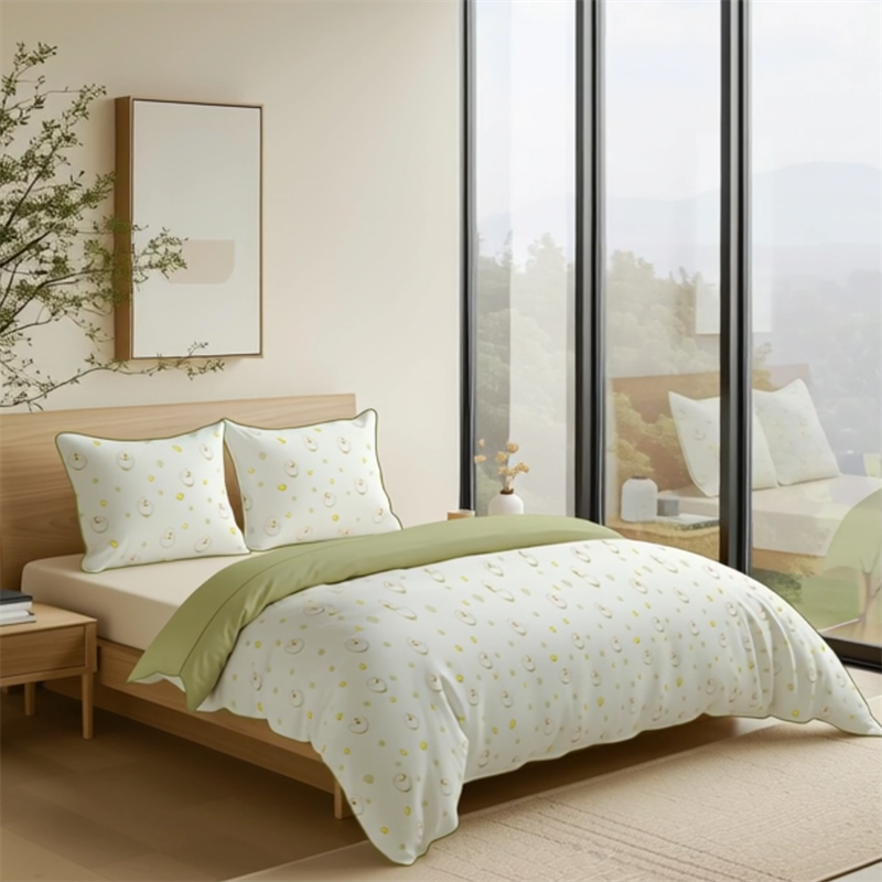 商品名称:纯色雨家纺 2025新款全棉斜纹跨境日韩欧美纯棉四件套数码印花南通家纺面料尺寸花型可定制 清欢