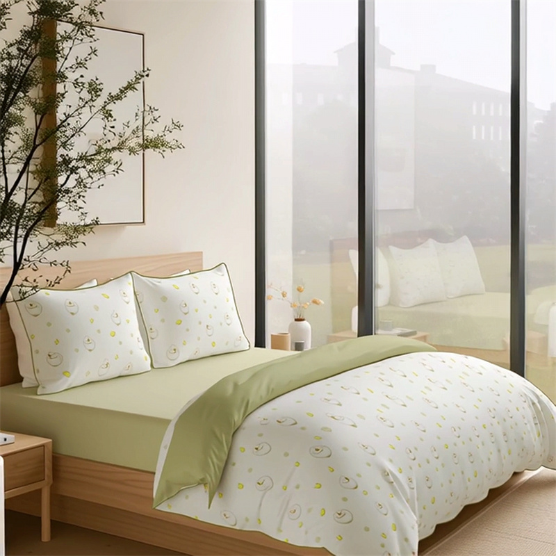 纯色雨家纺 2025新款全棉斜纹跨境日韩欧美纯棉四件套数码印花南通家纺面料尺寸花型可定制 清欢