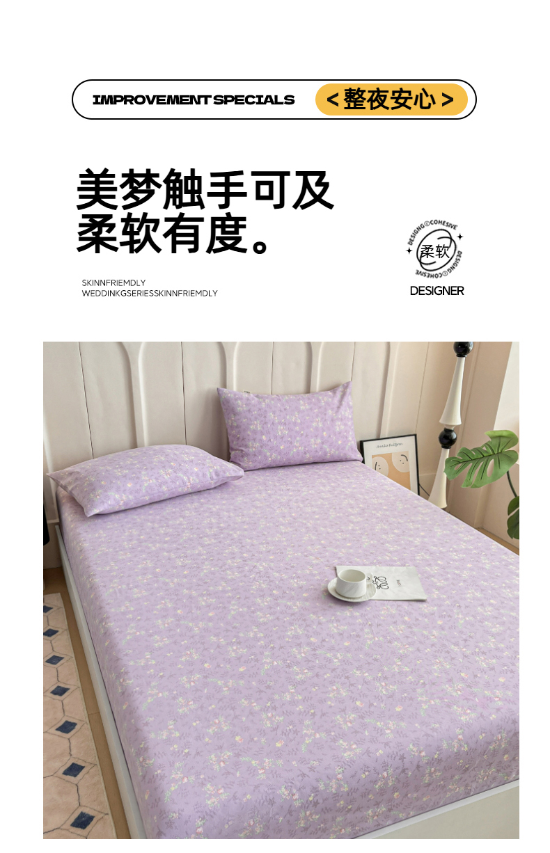 • 91家纺网 家纺一手货源 找家纺 棉乐町家居 2025新款升级细纱原棉老粗布印花单床笠床笠单件单品床笠 彩蝶