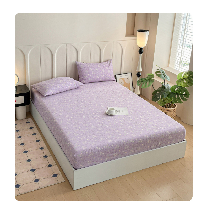 • 91家纺网 家纺一手货源 找家纺 棉乐町家居 2025新款升级细纱原棉老粗布印花单床笠床笠单件单品床笠 紫罗兰