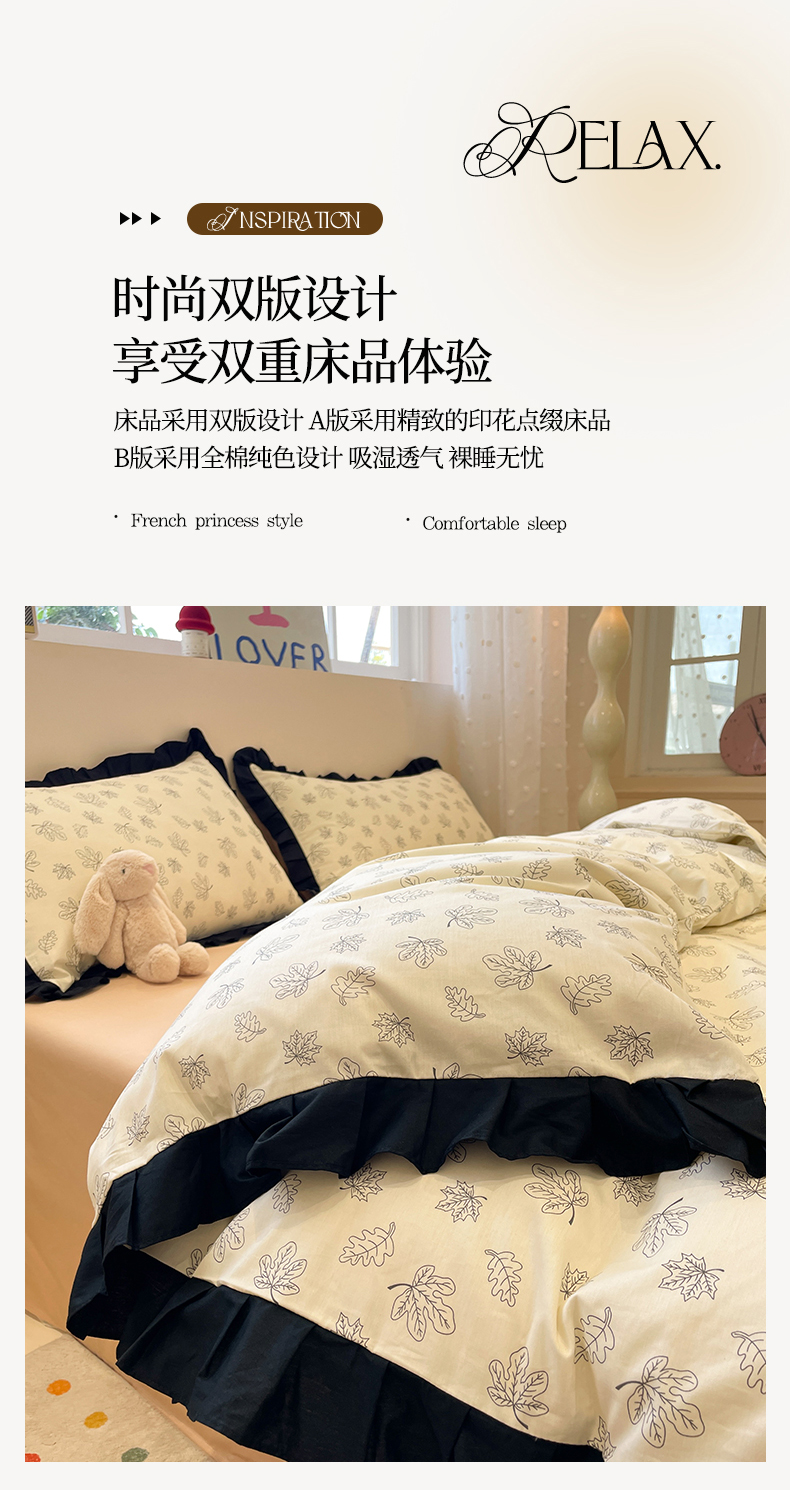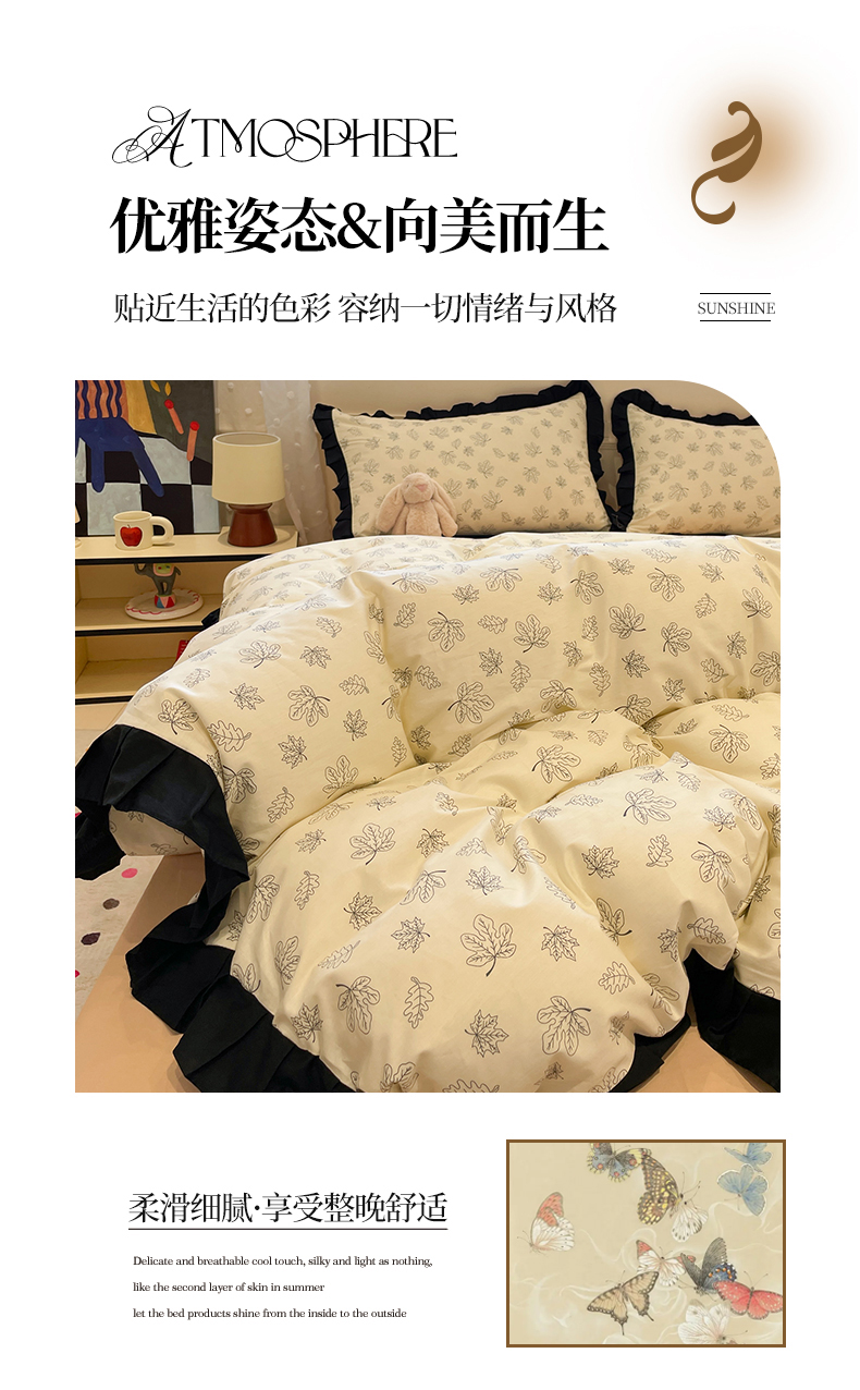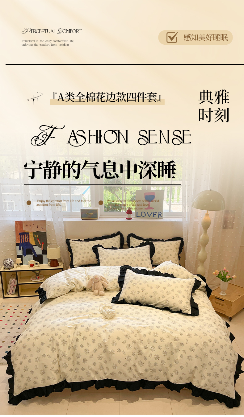 当前位置: 91家纺网 > 商品网购 > 床品套件 > 四件套 > 全棉普通四件套 > 羚羊语家纺 2025秋冬新款复古小清新花边款40支全棉纯棉轻法式13372小清新喷气印花 繁花一梦