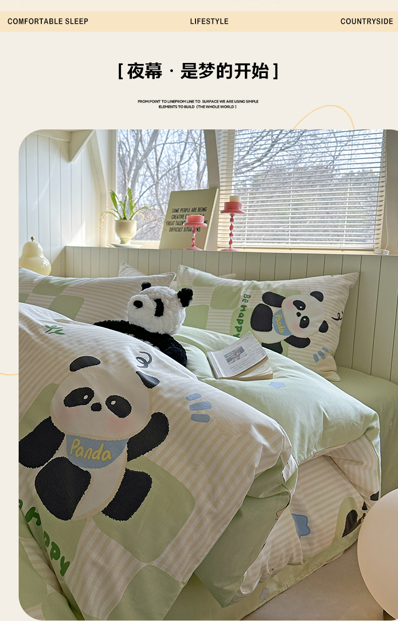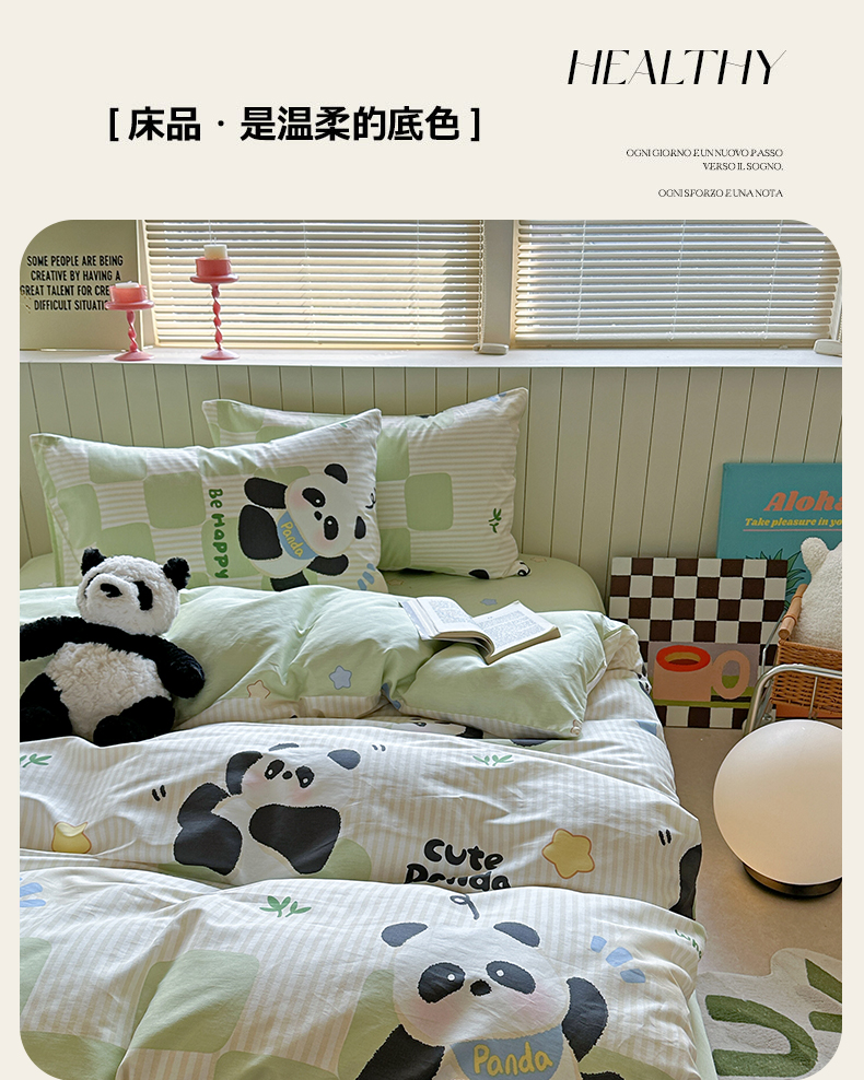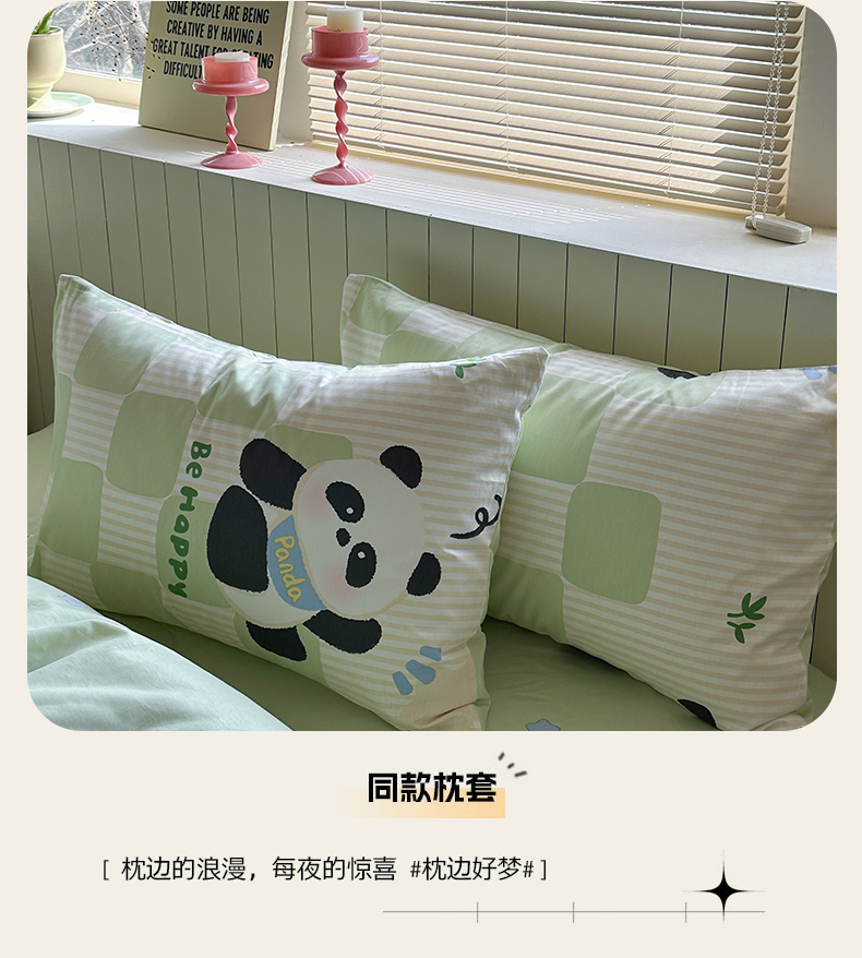 当前位置: 91家纺网 > 商品网购 > 床品套件 > 四件套 > 麦伦家居 2025新款40s斜纹全棉纯棉跑量款卡通小清新四件套 小熊猫