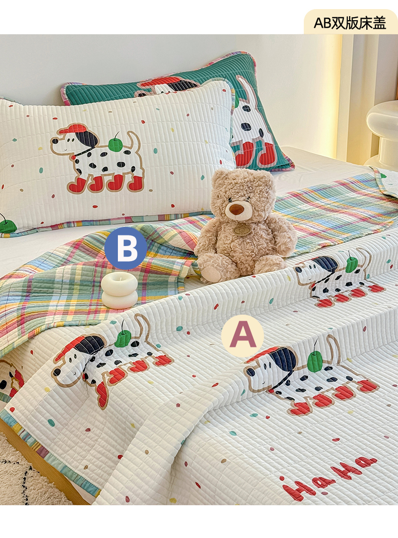 (总)橙子家居 2025新款双面纯棉夹层新疆棉花数码印花系列床盖单件-单床盖,斑点狗红,大眼萌红,粉蝴蝶结,花蔓蓝,花兔,花野,黄宽条,柿柿狗,淑女狗,兔兔熊,英文猫粉,樱为有你