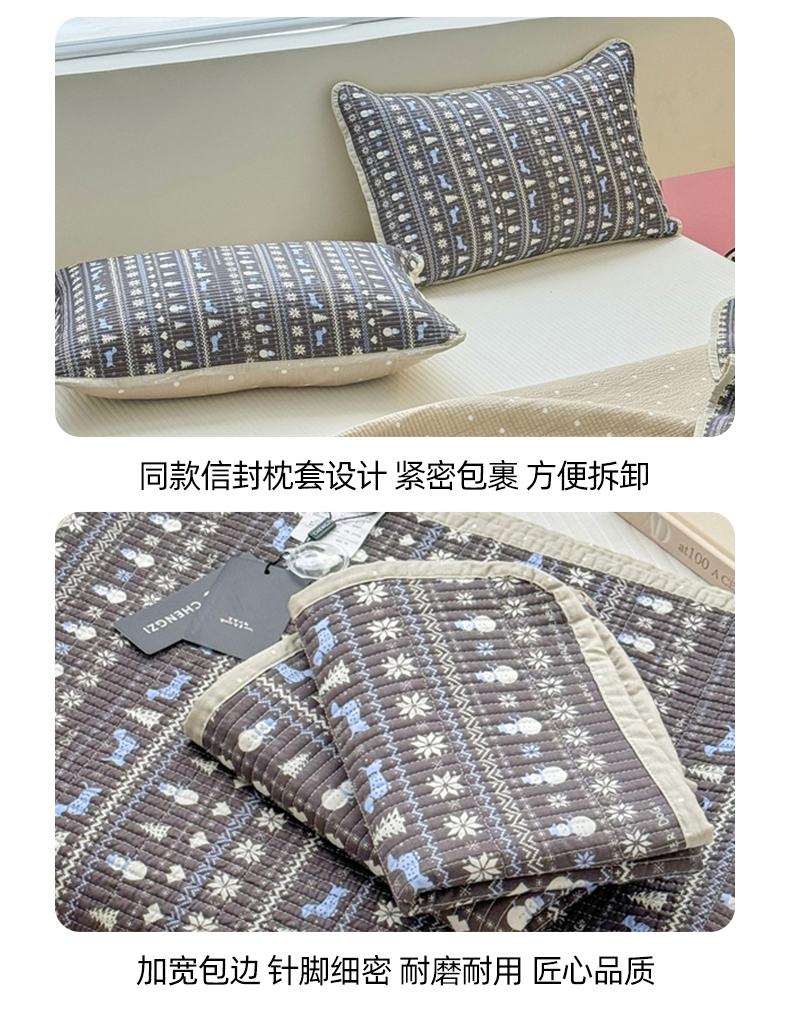 • 91家纺网 家纺一手货源 找家纺 橙子家居 2025新款双面全棉纯棉13372印花棉花床盖三件套-第二批 雾夏-绿