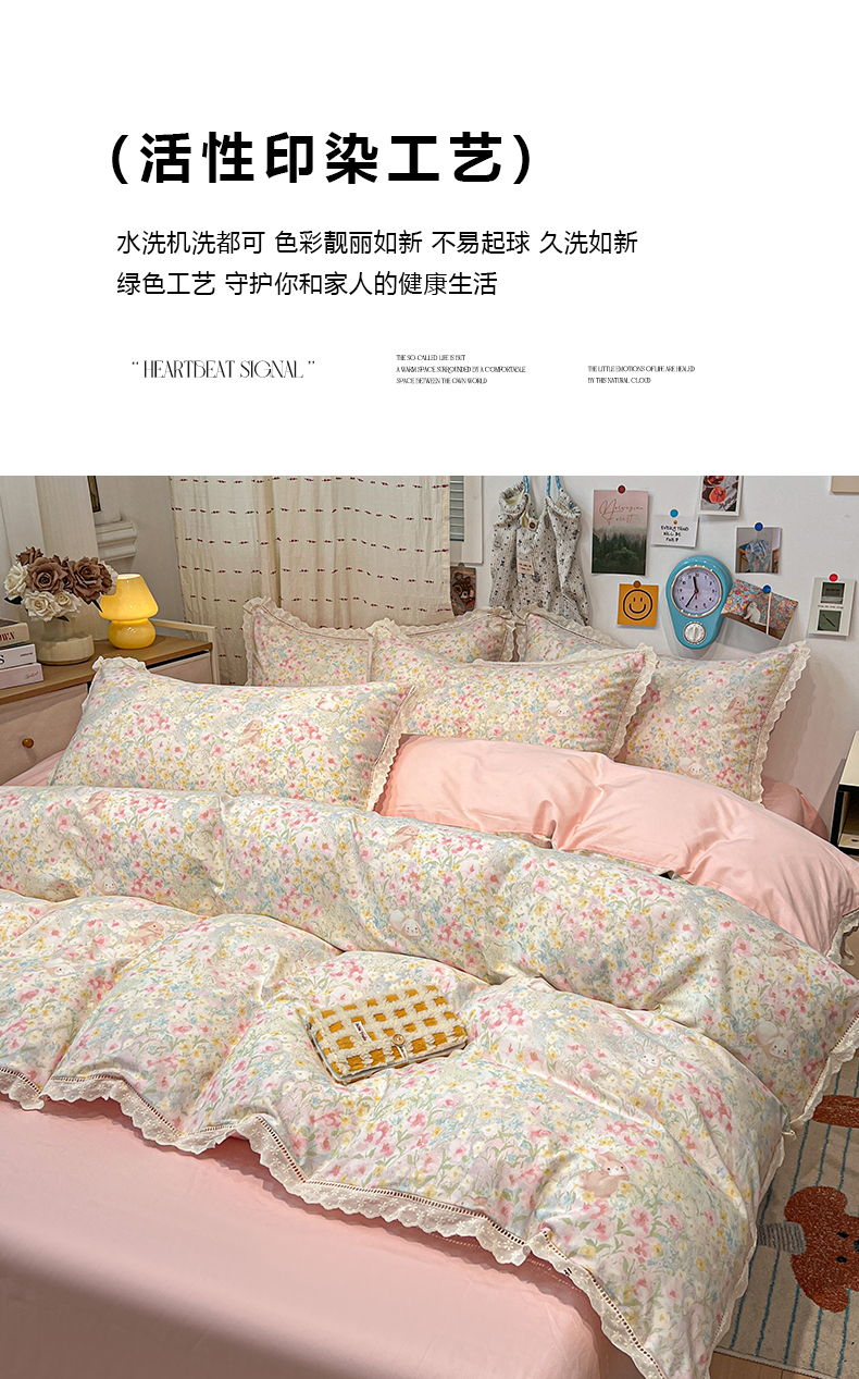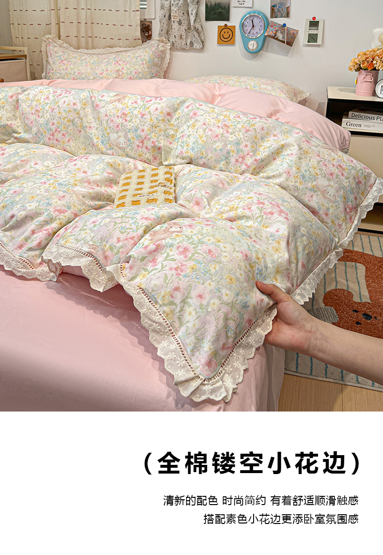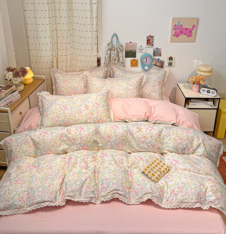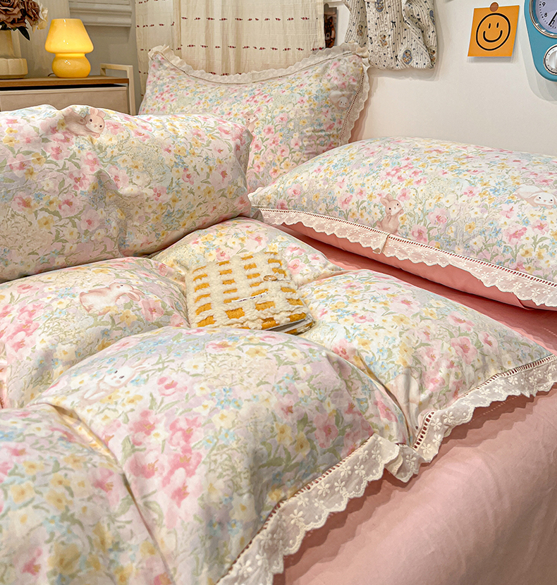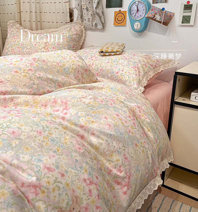 当前位置: 91家纺网 > 商品网购 > 床品套件 > 四件套 > 全棉普通四件套 > 橙子家居 2025新款小清新全棉纯棉花边款床单四件套 梦幻花园兔