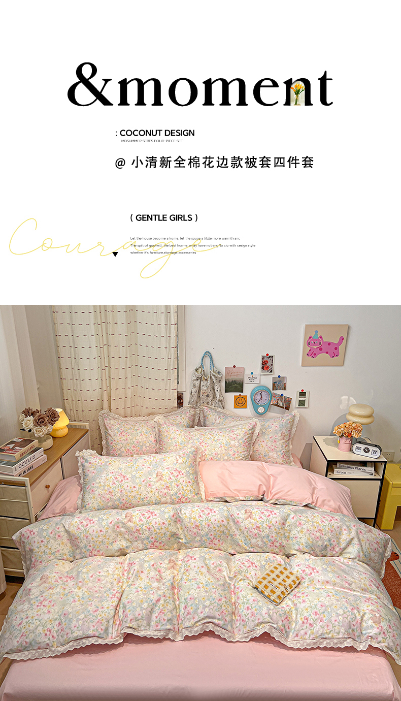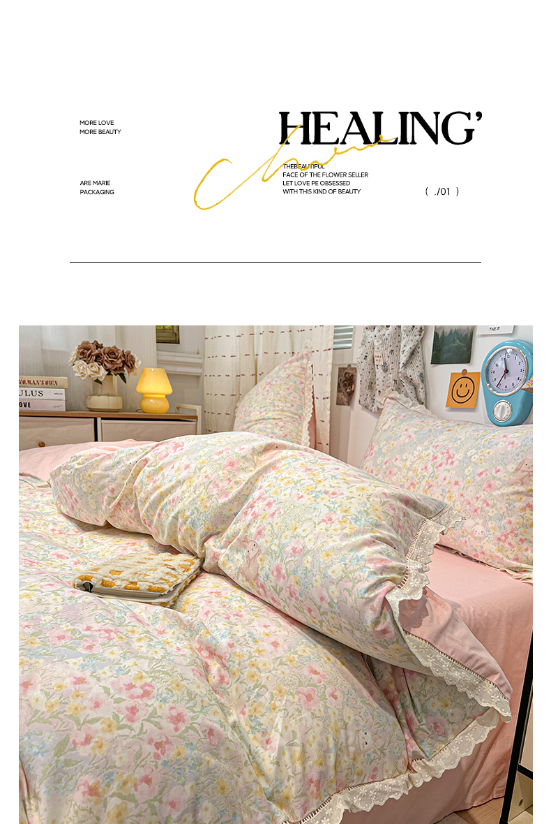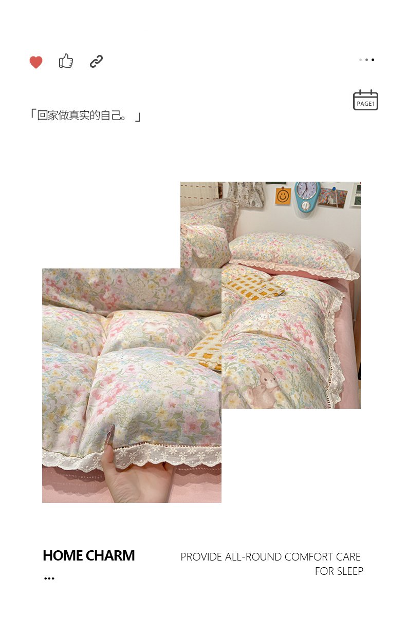 当前位置: 91家纺网 > 商品网购 > 床品套件 > 四件套 > 全棉普通四件套 > 橙子家居 2025新款小清新全棉纯棉花边款床单四件套 梦幻花园兔