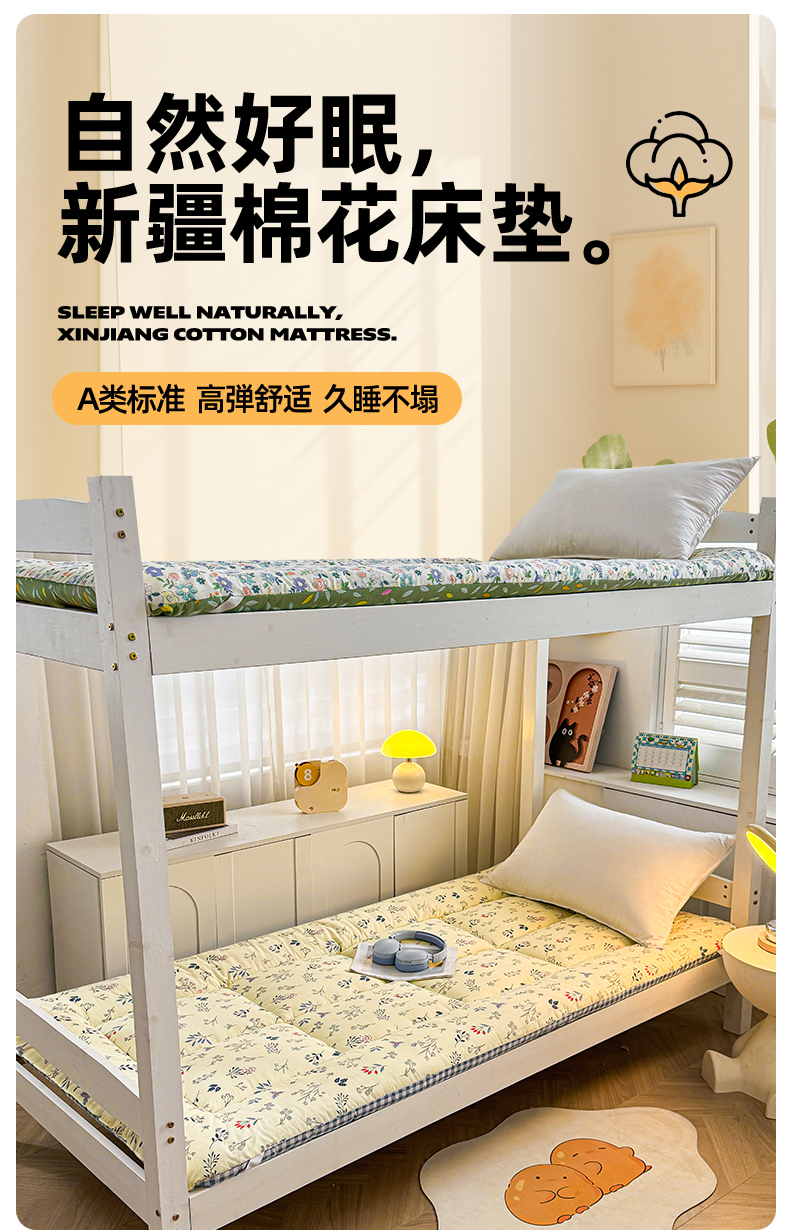 当前位置: 91家纺网 > 商品网购 > 床垫/床褥 > 普通床垫 > 梵蒂莎 2025新款新疆棉花四季款秋冬两用床垫子褥子学生宿舍印花学生款棉花床褥垫(场景2)(含买家秀) 浅草花吟-床垫