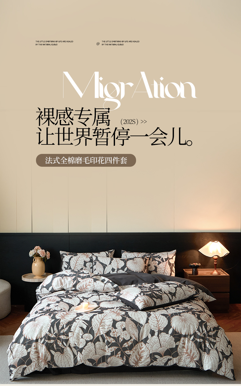 当前位置: 91家纺网 > 商品网购 > 床品套件 > 四件套 > 全棉普通四件套 > 蓝邻家纺 2025新款全棉纯棉加厚磨毛法式复古风四件套 蕉叶
