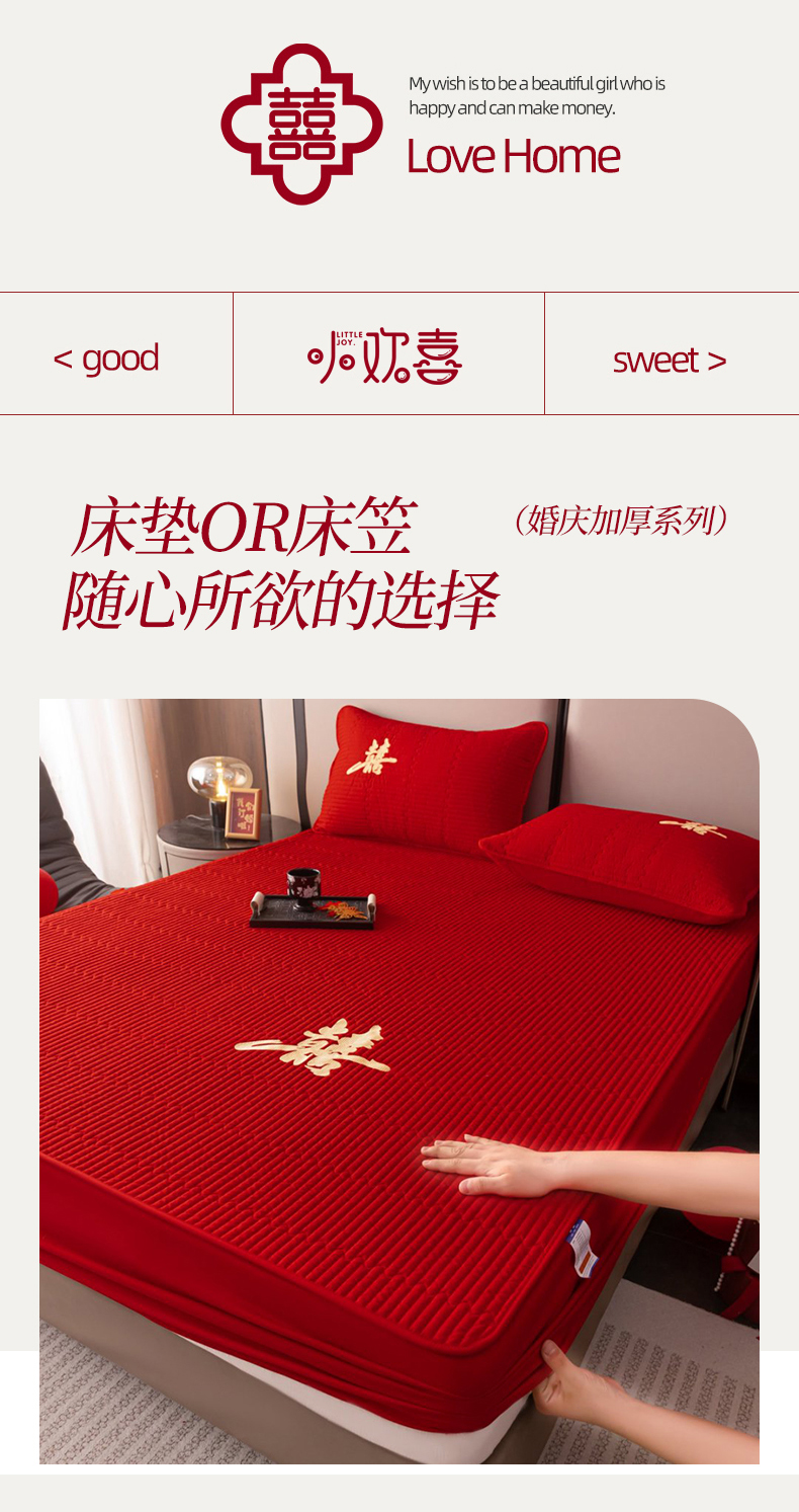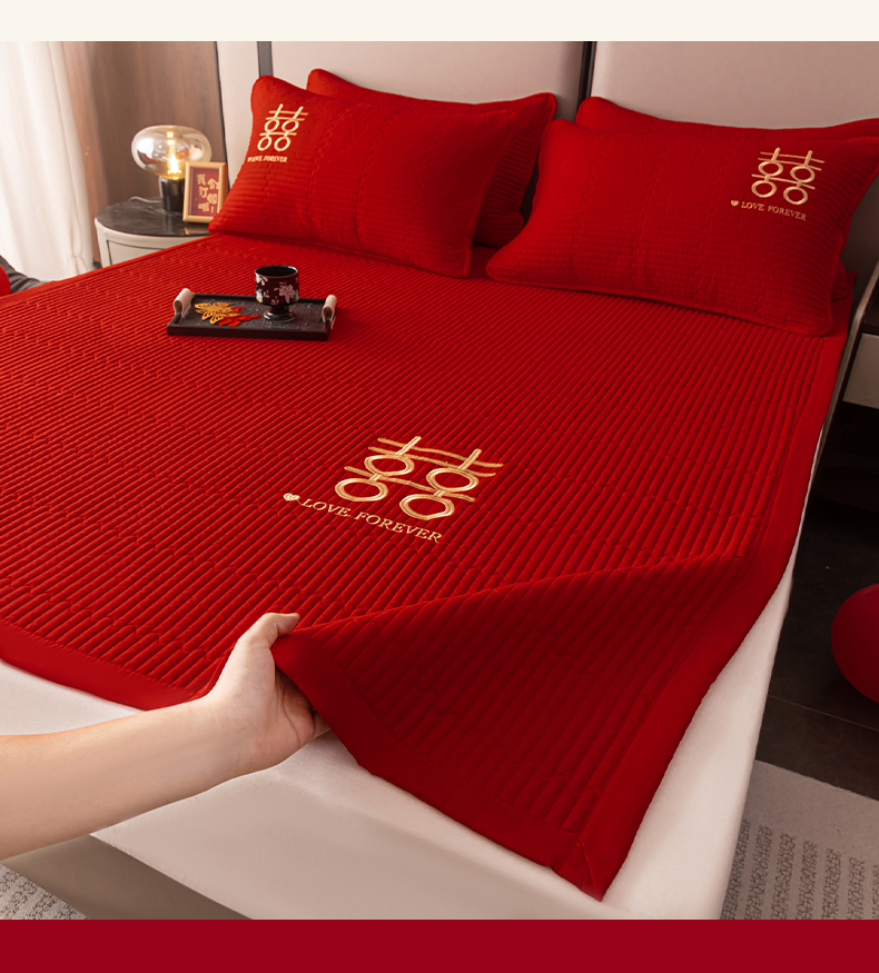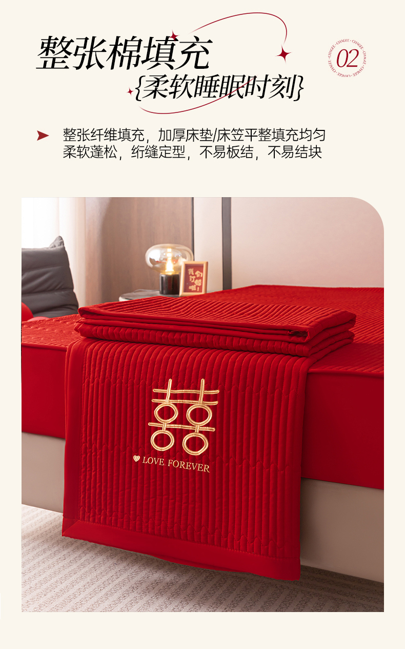 卓缦家纺 2025新款婚庆加厚软床垫软床笠三件套婚庆床单床盖 欢喜-床护垫