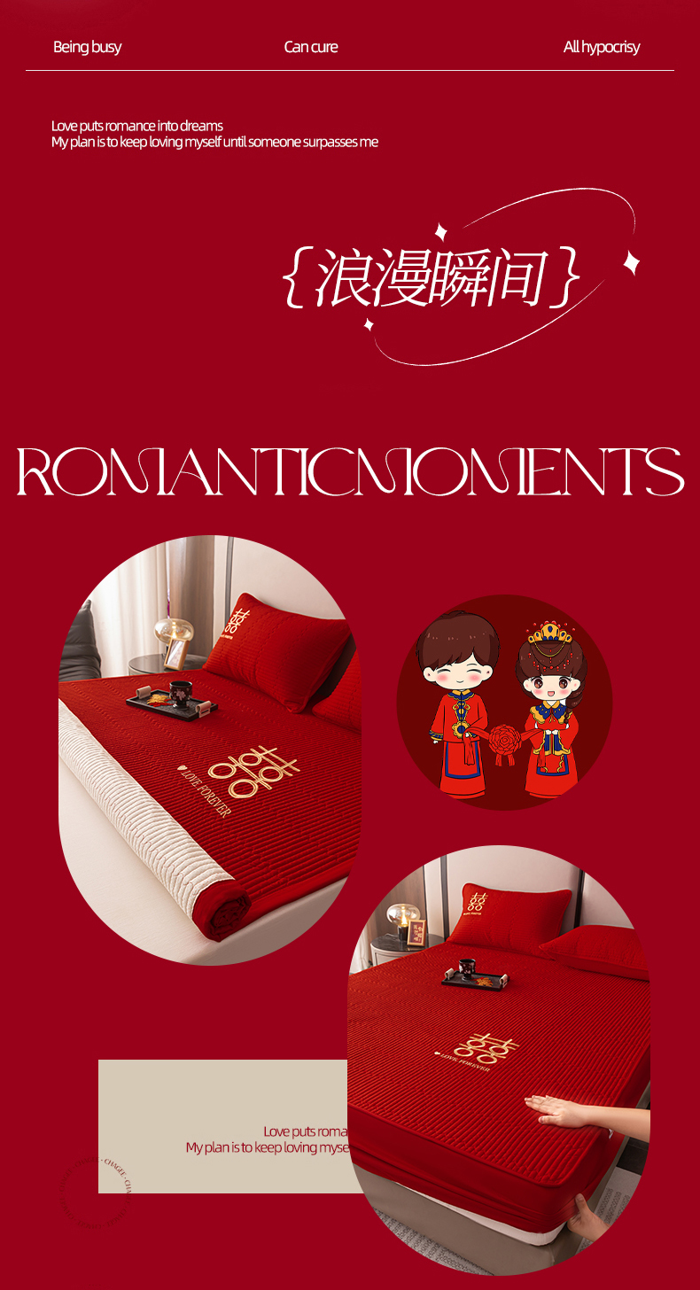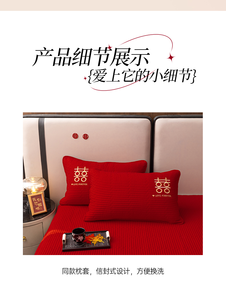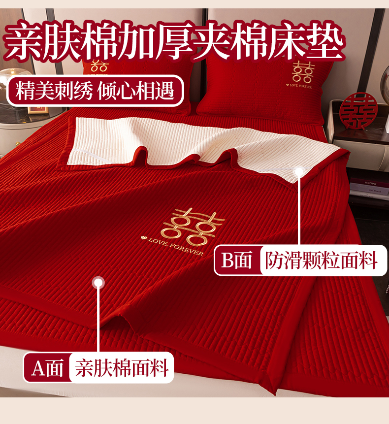 商品名称:卓缦家纺 2025新款婚庆加厚软床垫软床笠三件套婚庆床单床盖 欢喜-床护垫