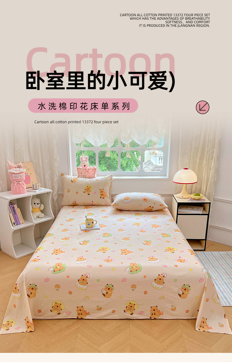 • 91家纺网 家纺一手货源 找家纺 优佳优品 2025新款亲肤水洗棉印花床单单品床单单件单床单 床单款-卡皮巴拉