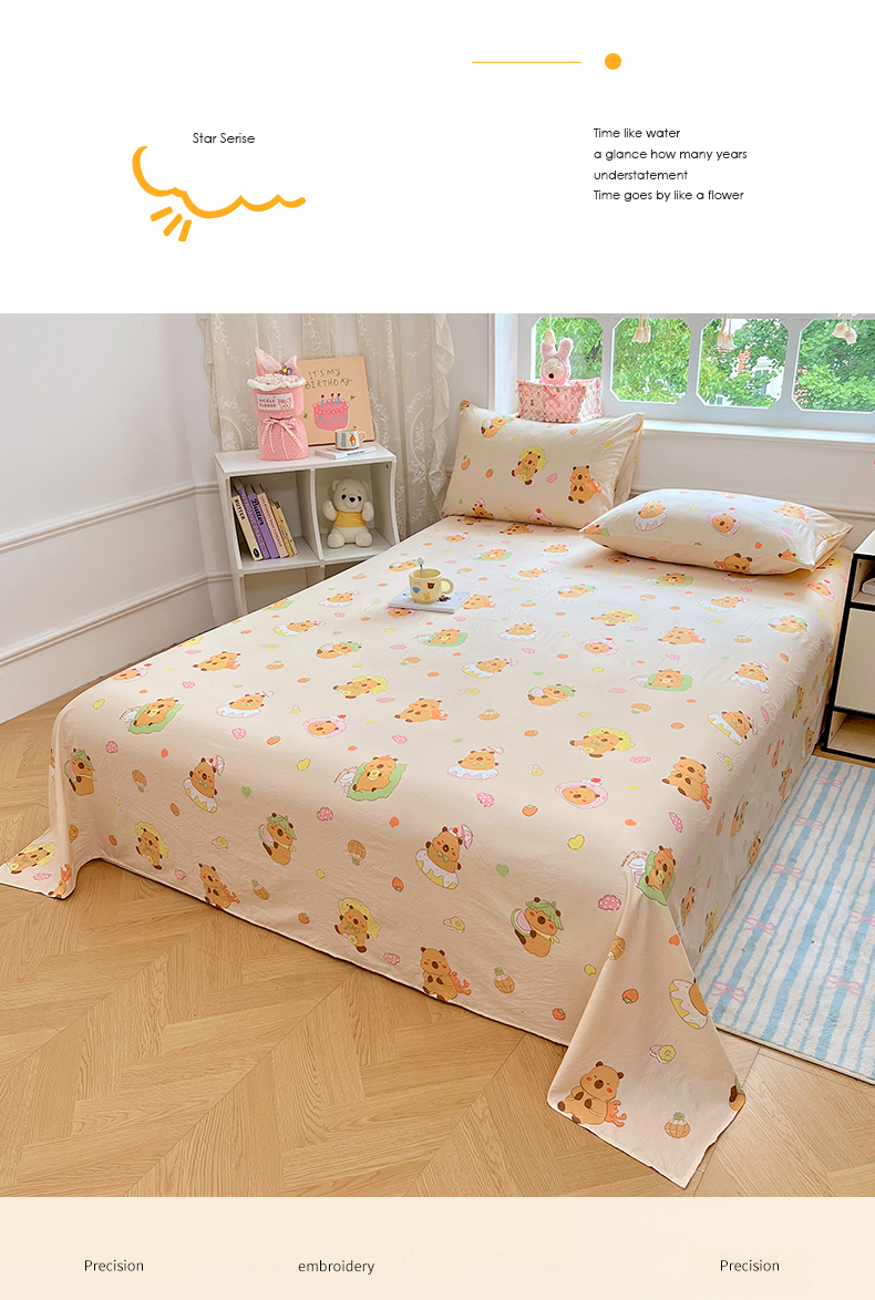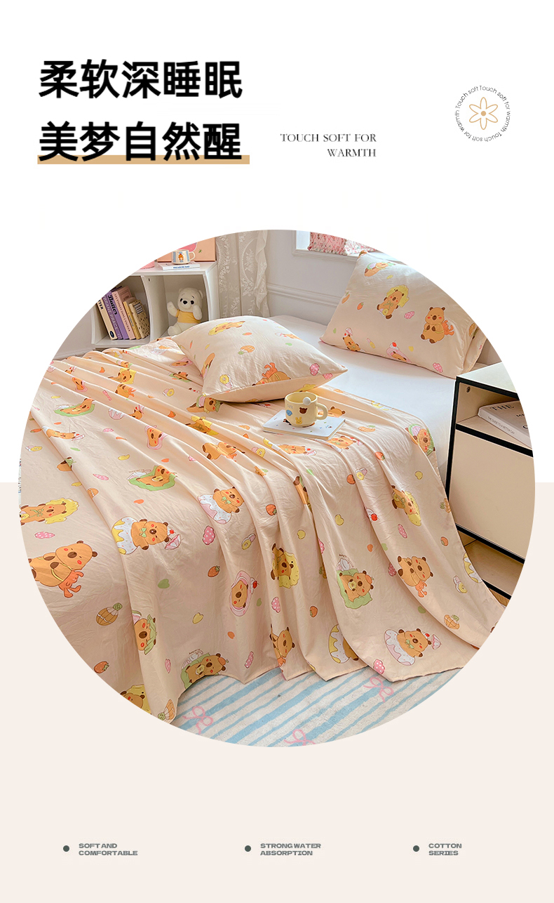 优佳优品 2025新款亲肤水洗棉印花床单单品床单单件单床单 床单款-卡皮巴拉