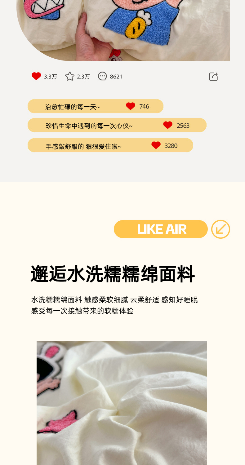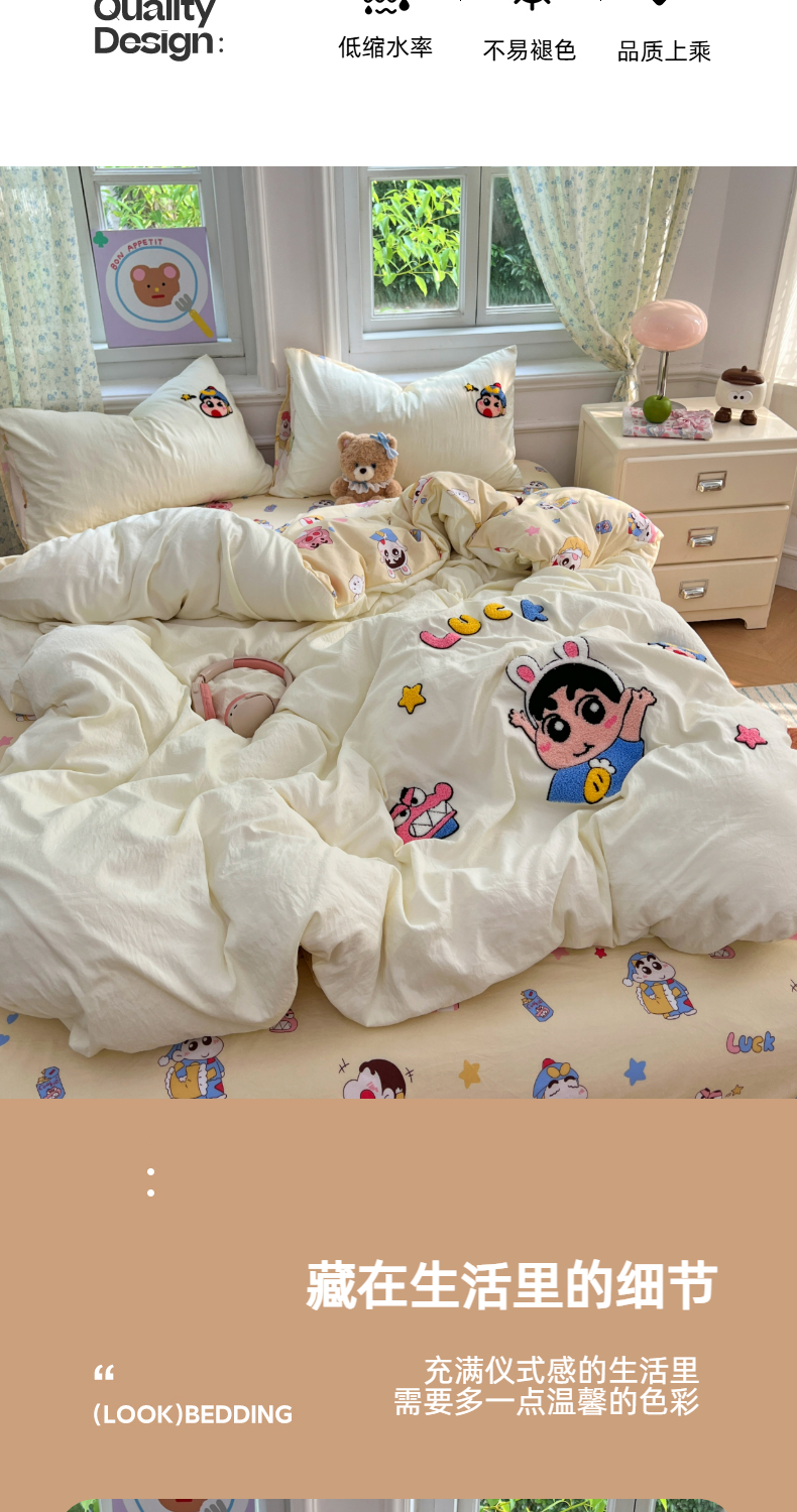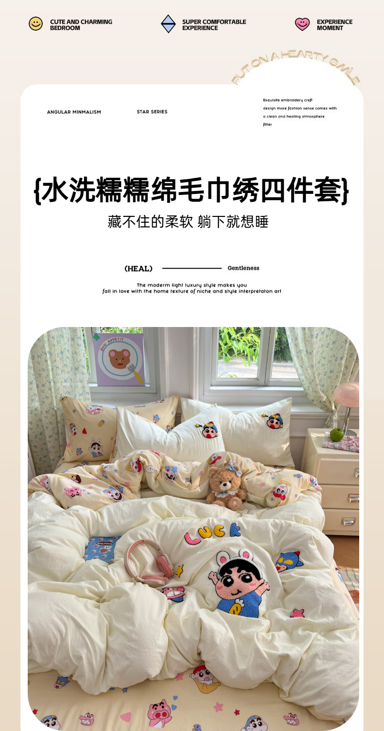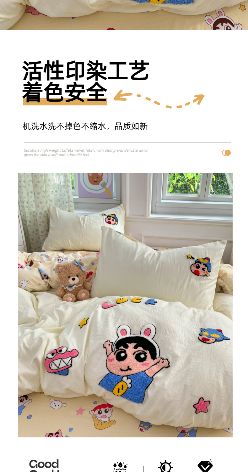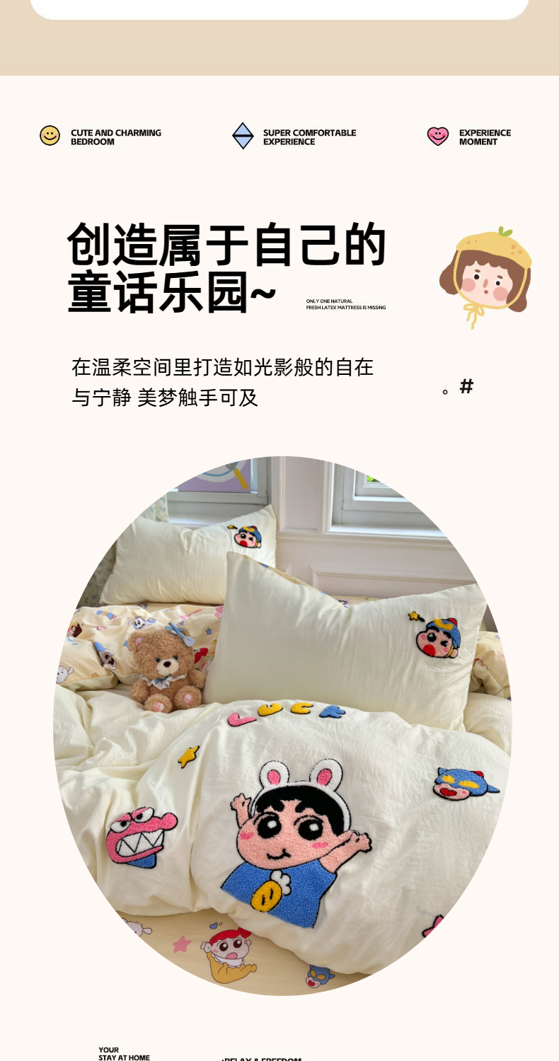 当前位置: 91家纺网 > 商品网购 > 床品套件 > 四件套 > 毛巾绣四件套 > 优佳优品 2025新款水洗棉印花毛巾绣四件套【提供买家秀】 蜡笔小新